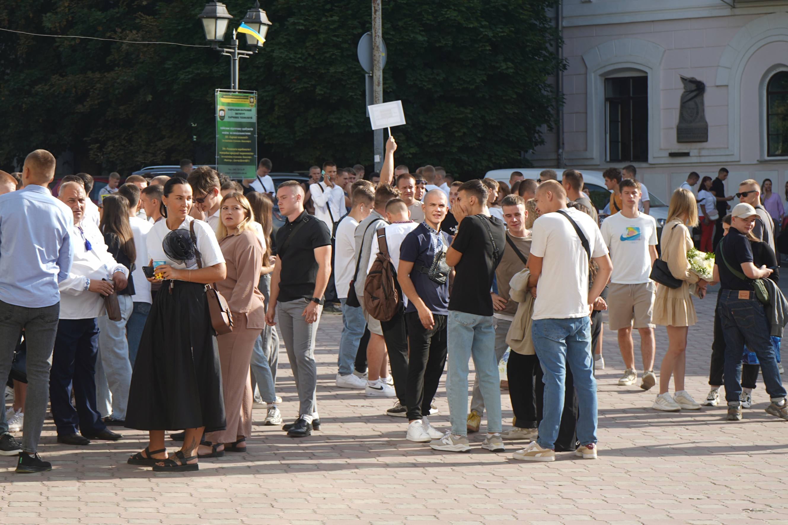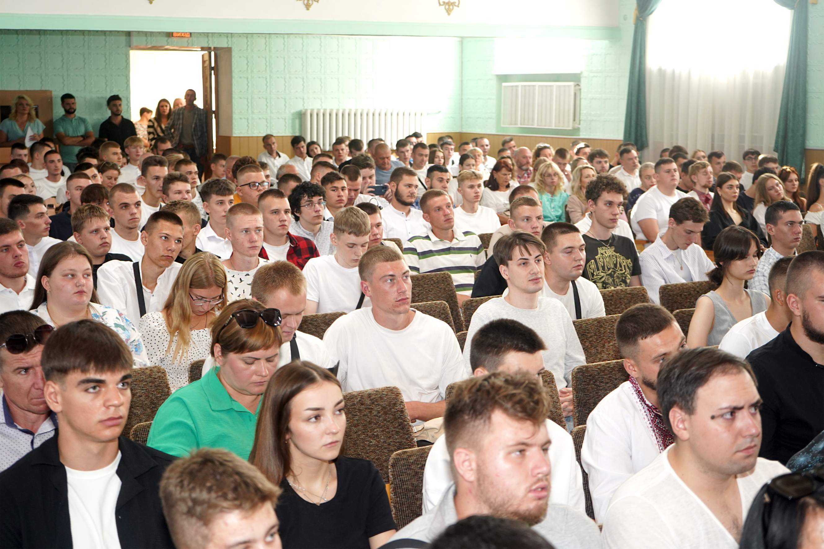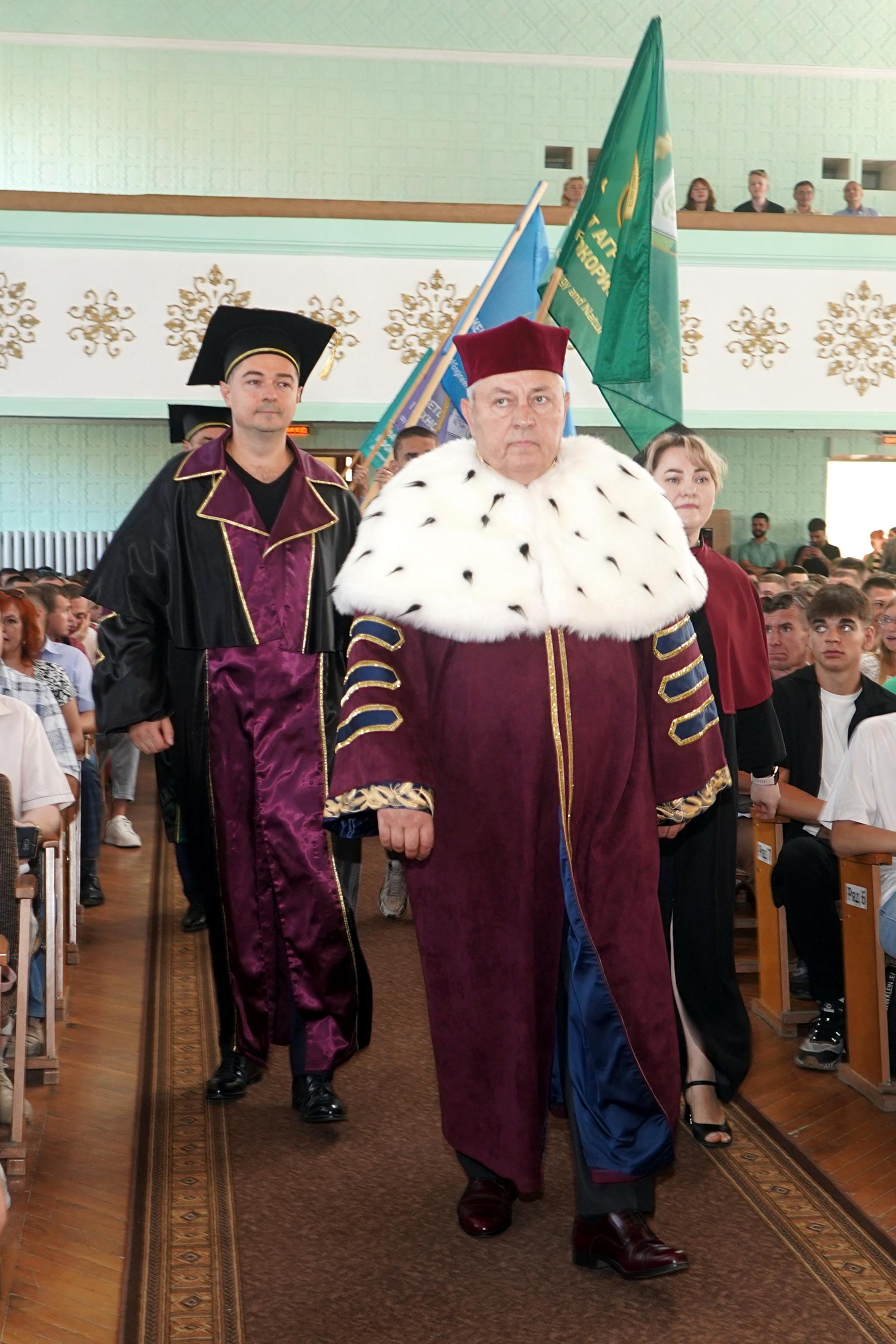 З вітальним словом до першокурсників звернувся ректор університету Володимир ІВАНИШИН. Він привітав їх у родині Закладу вищої освіти «Подільський державний університет» та побажав сміливості в підкоренні нових вершин. Хвилиною мовчання присутні вшанували патріотизм, вірність і героїзм тих, хто поклав своє життя за волю, єдність і незалежність України. Ректор запросив здобувачів вищої освіти для покладання Гірлянди воїнської слави до меморіалу у Сквері Героїв. У своїй промові Володимир Васильович поіменно назвав усіх працівників нашого університету, які зараз несуть службу в Збройних силах України.