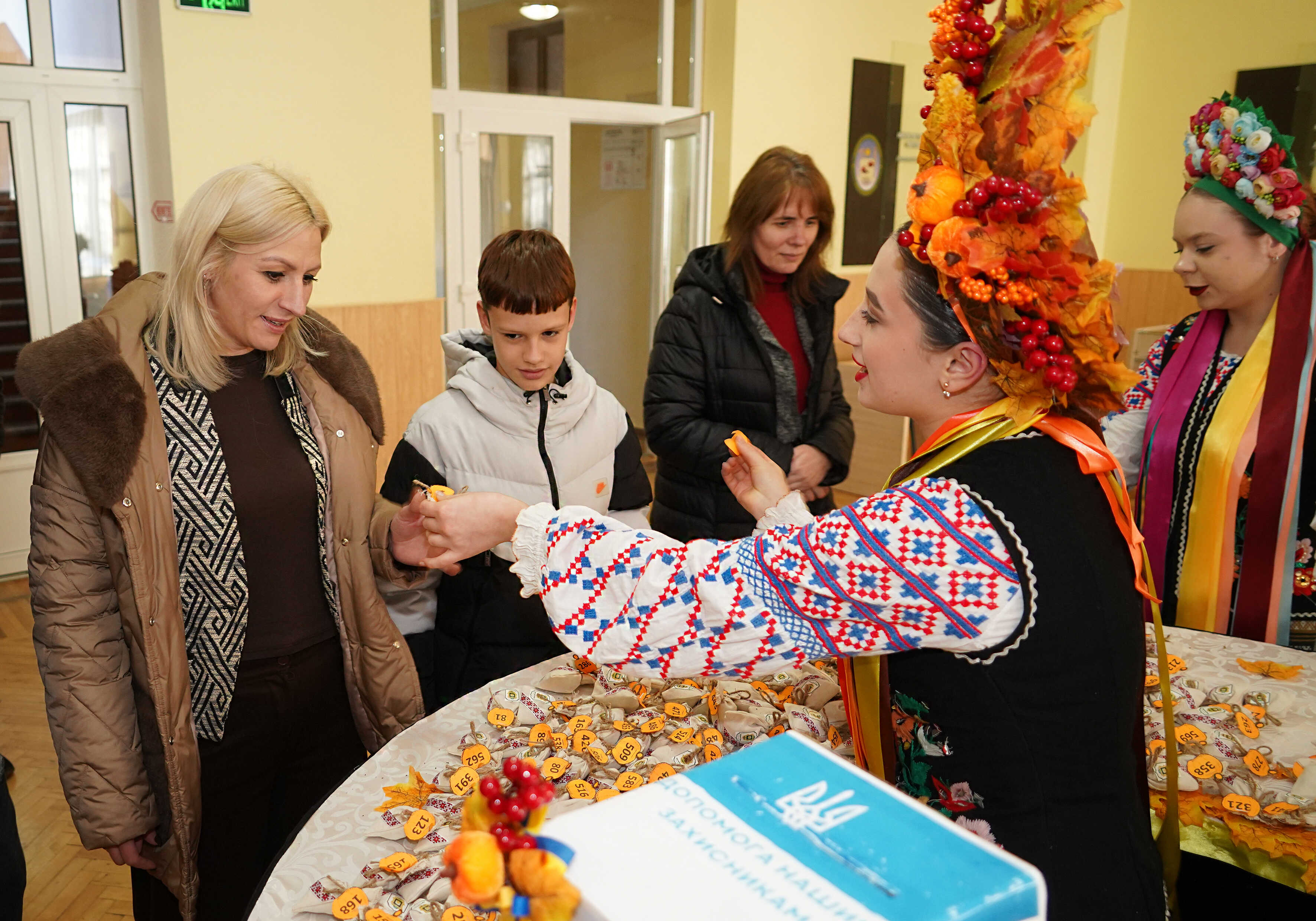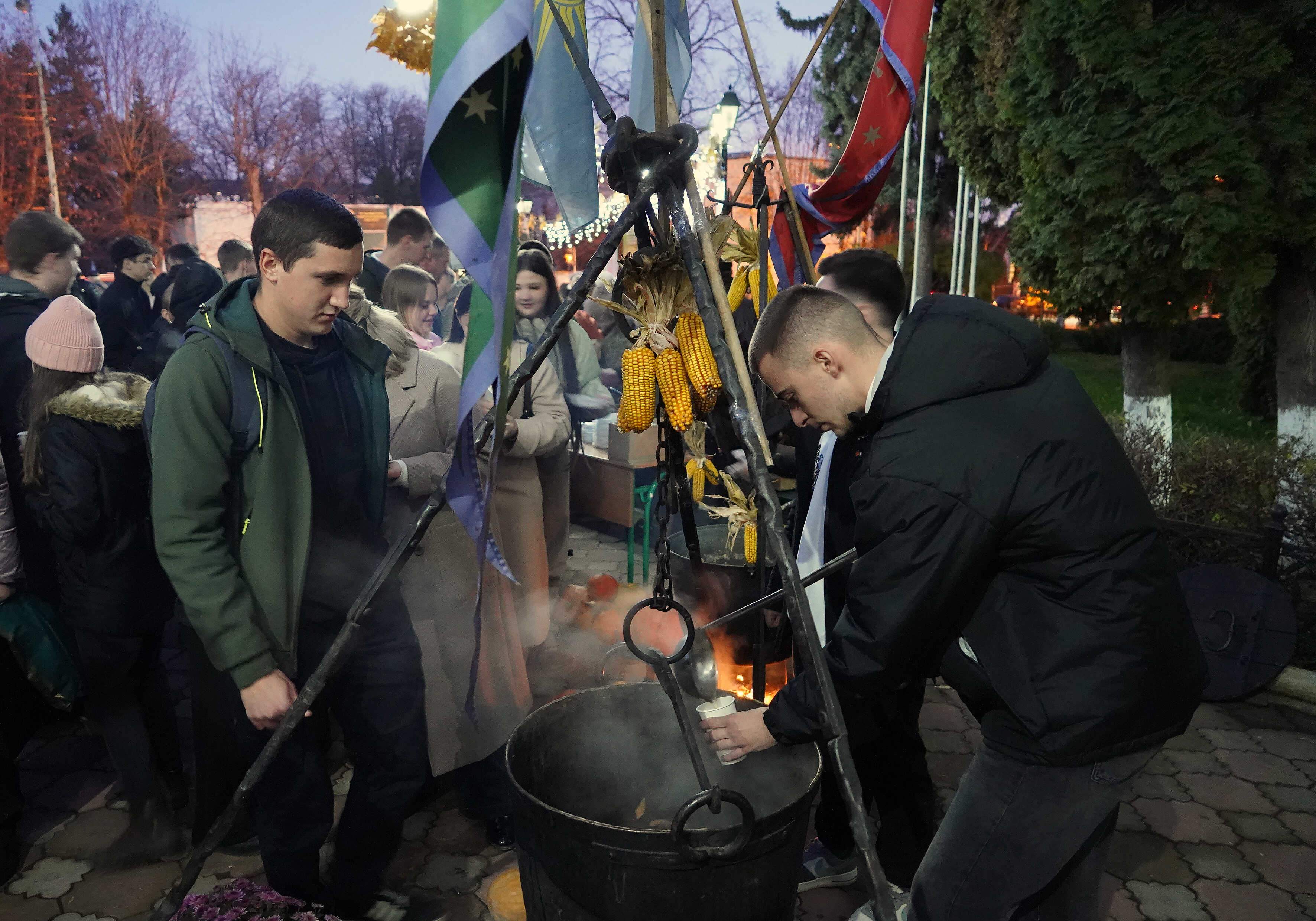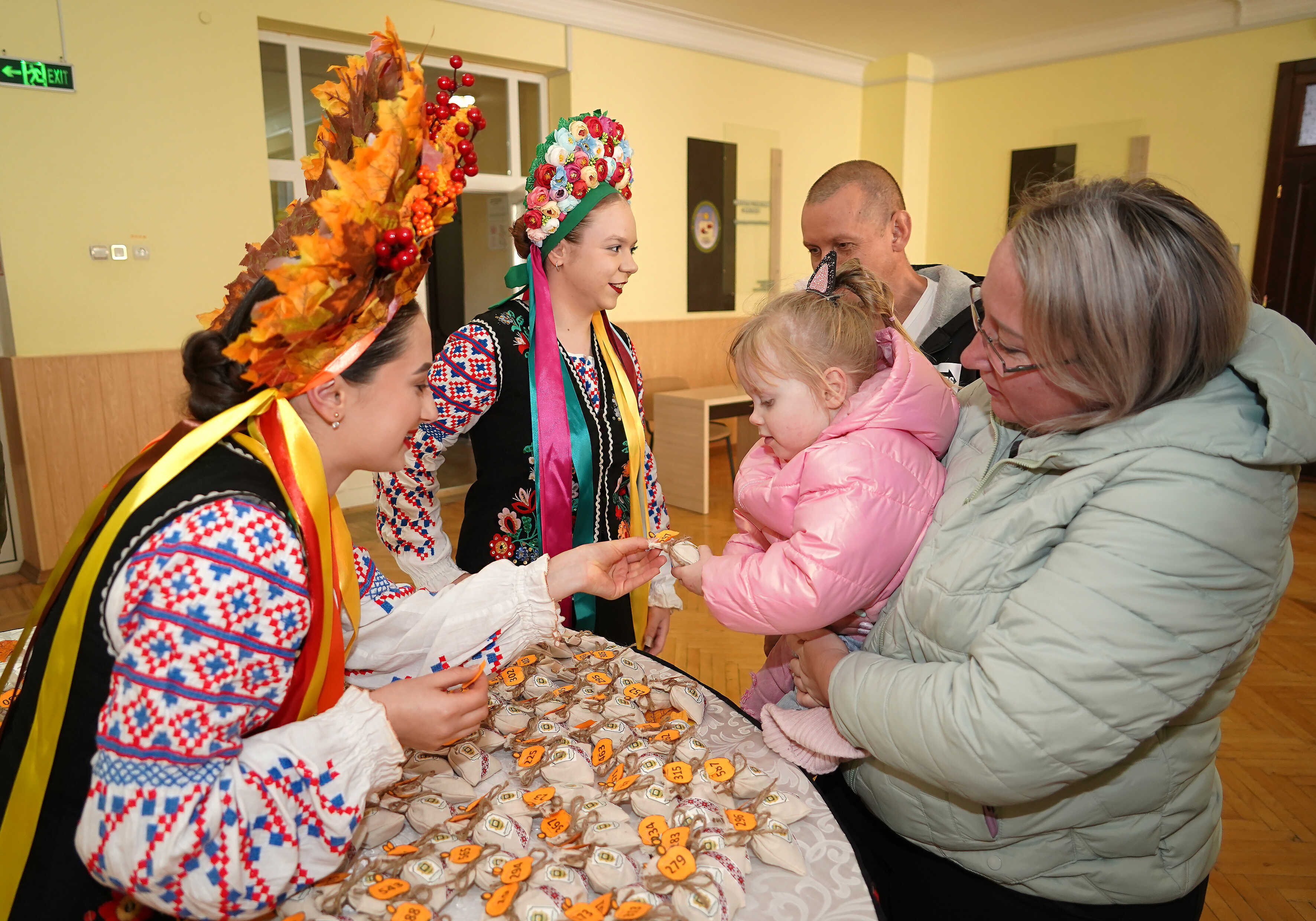 Святкування продовжилося просто неба на площі перед головним корпусом, де панувала справжня святкова атмосфера. Тут усі охочі могли відвідати яскраві фотозони, насолодитися виступом вуличного театру, скуштувати козацький куліш і традиційний узвар, гостинно приготовані підприємцем Олегом ВОЩИНСЬКИМ, власником кав’ярні «Кава від поліцмейстера». Його доброзичлива гостинність і смачна продукція стали ще одним символом тепла і родинного настрою свята. Завершальним акордом стало ефектне фаєр-шоу, яке подарувало гостям незабутні емоції.