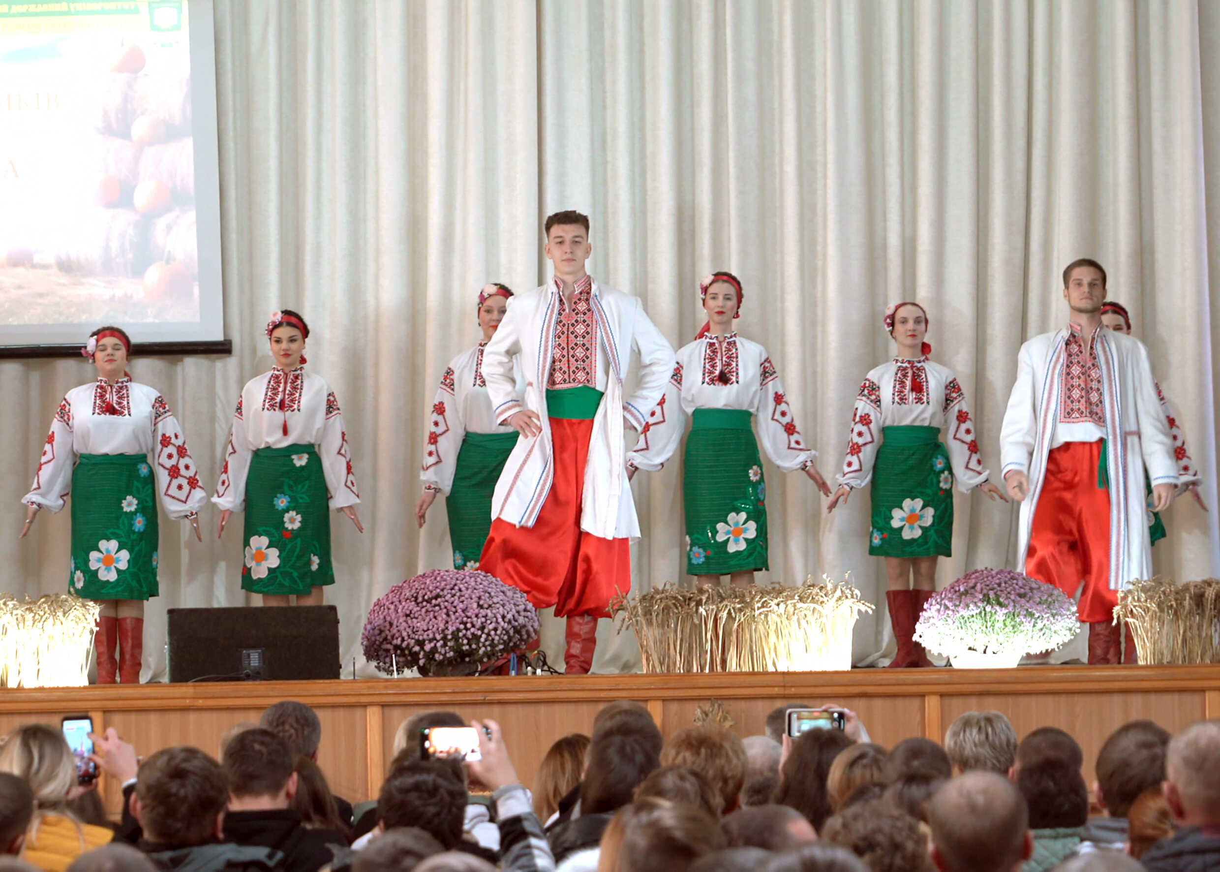 Урочистості в актовій залі розпочались символічно й натхненно: зал наповнили мелодії студентського оркестру, а традиційний коровай — знак достатку й поваги — було урочисто вручено виконувачці обов’язків ректора Аллі ІВАНОВСЬКІЙ. Присутні вшанували хвилиною мовчання пам’ять Героїв України, після чого переглянули зворушливий відеоролик «Посіяне серцем», який нагадав про справжню ціну хліба і про тих, хто з любов’ю та самовідданістю вирощує його навіть у час війни.