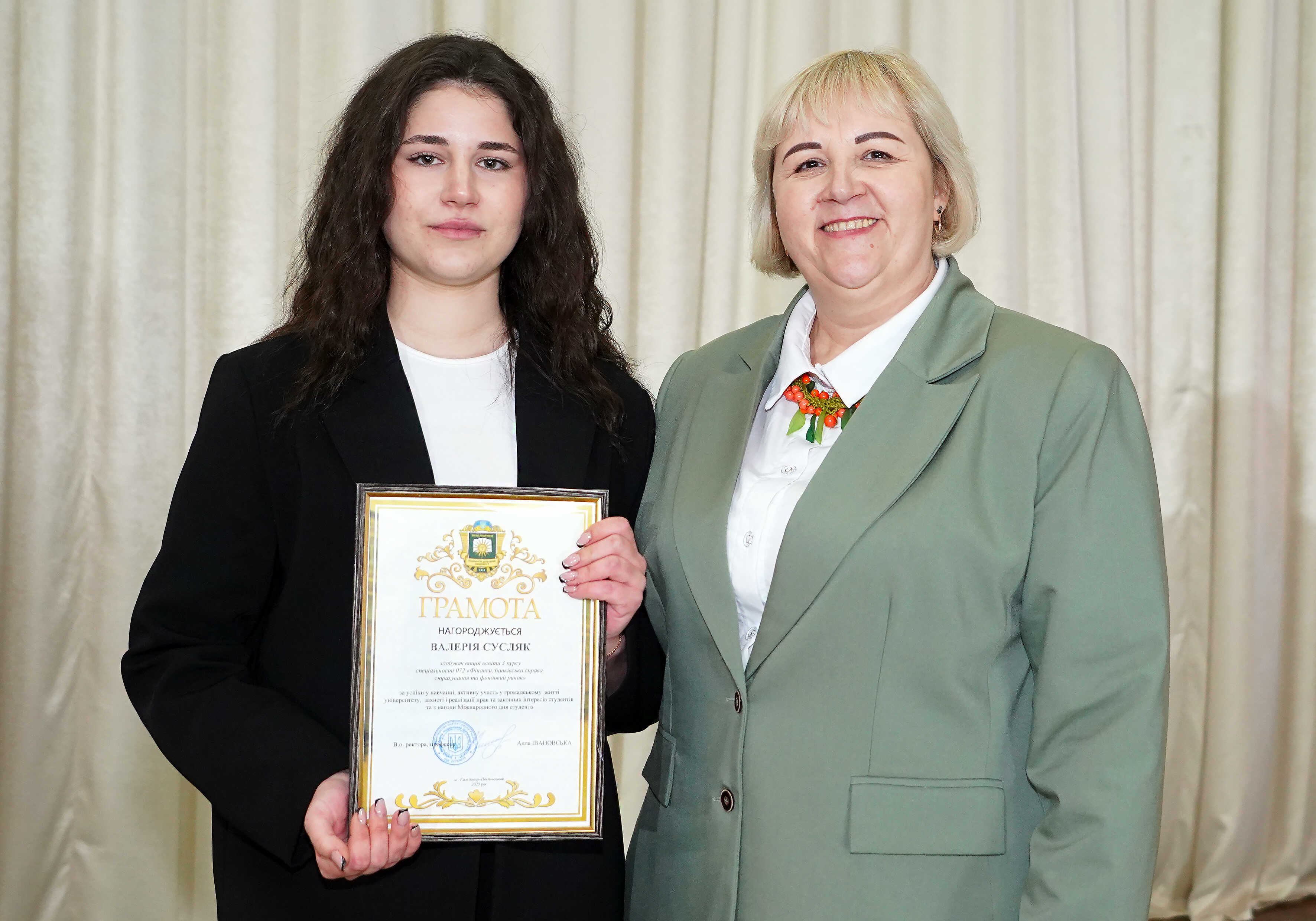 З теплими словами до присутніх звернулася також голова первинної профспілкової організації співробітників і студентів ЗВО «ПДУ» Світлана ЛІЩУК. Вона привітала колектив зі святом і нагородила працівників та студентів, які активно беруть участь у розвитку університетської спільноти.