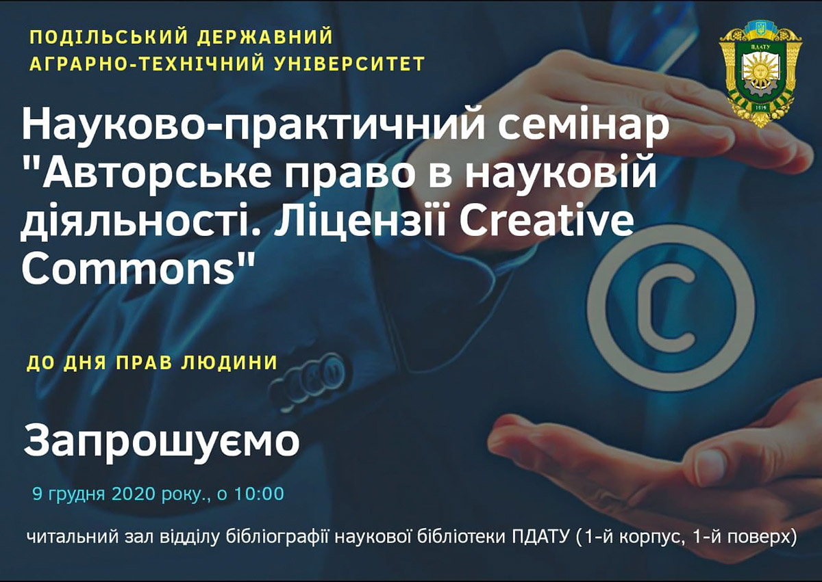 - Ліцензії Creative Commons і мережа Інтернет (Михайлик А.О., кандидат історичних наук, доцент, директор наукової бібліотеки ПДАТУ).