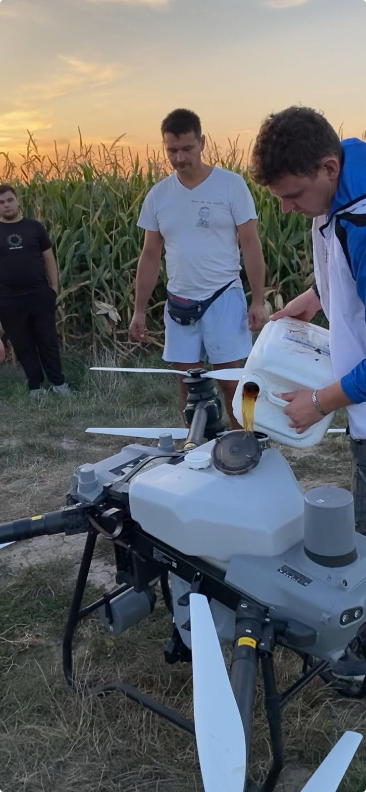 Студенти мали можливість на власні очі побачити запуск агродрона, роботу систем навігації та механізмів розпилення під час десикації посівів соняшнику.