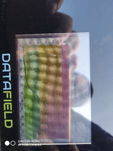 На екрані відображається графік глибини і ущільнення грунту позначене кольорами: зелени, салатовий, жовтий, оранжевий і червоний, які характеризують твердість грунту, відповідно: пухкий, пухкуватий, щільнуватий, щільний, дуже щільний. За результатами дослідження щільності грунтів були розроблені заходи з їх розущільнення та передані керівництву Групи компаній VITAGRO.