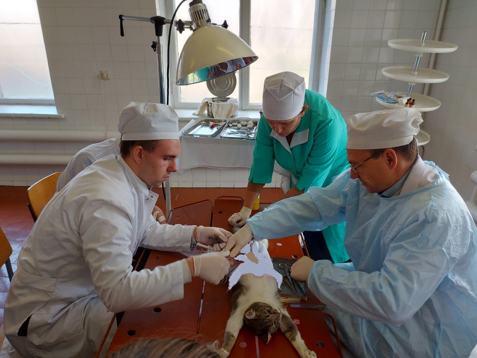 Під керівництвом кандидата ветеринарних наук, доцента, асистента кафедри ветеринарного акушерства, внутрішньої патології та хірургії СТЕПАНОВА О.Д. здобувачі освіти старших курсів провели оваріогістеректомію кішки. Після закінчення операції студенти із викладачем обговорили сучасні тенденції розвитку ветеринарної хірургічної науки та практики. Подібний формат засідання гуртка дозволяє майбутнім лікарям ветеринарної медицини краще засвоїти теоретичний матеріал практичними навичками, навчитись лікарському мисленню, самостійно ухвалювати рішення щодо різних клінічних випадків.