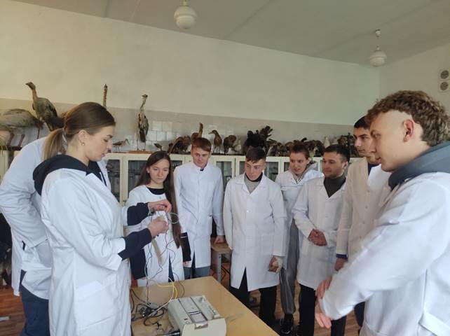 Нещодавно було проведено засідання гуртка «Експериментальний фізіолог» на тему: «Дослідження серцево-судинної системи методом - електрокардіографія (ЕКГ)»(науковий керівник, асистент кафедри НПМіФ, Оксана КОВАЛЬОВА).