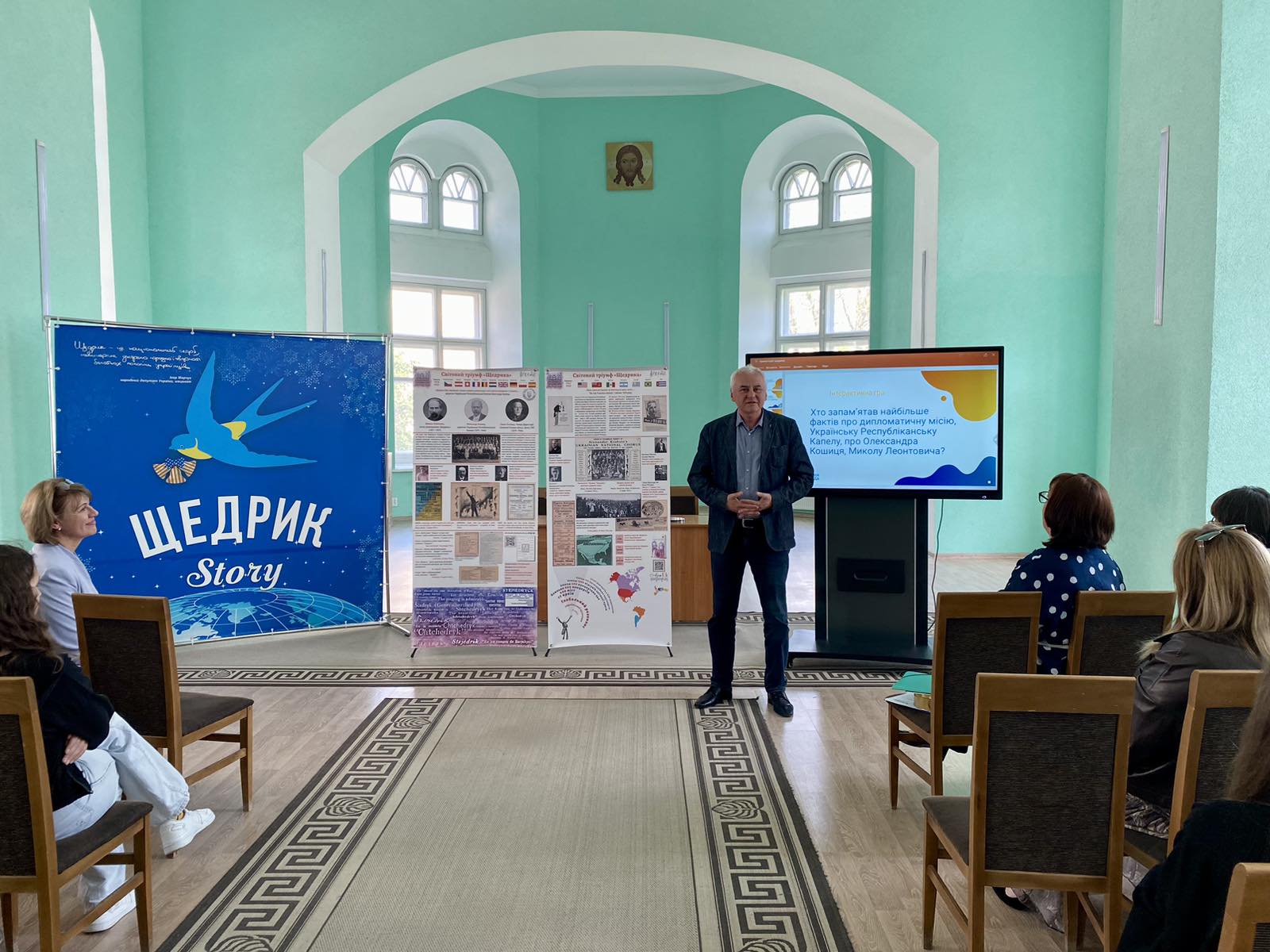 Науковою бібліотекою ЗВО «ПДУ» було представлено книжкову виставку, яка є презентацію літератури та артифактів про українських культурних і політичних діячів, про Українську народну республіку, про М. Леонтовича, про тріумф Української Республіканської Капели та роль «Щедрика» у становленні Української держави.