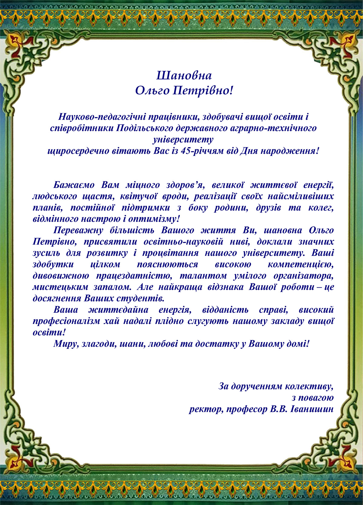 Вітаємо з Ювілеєм Ольгу Петрівну Прокопову!