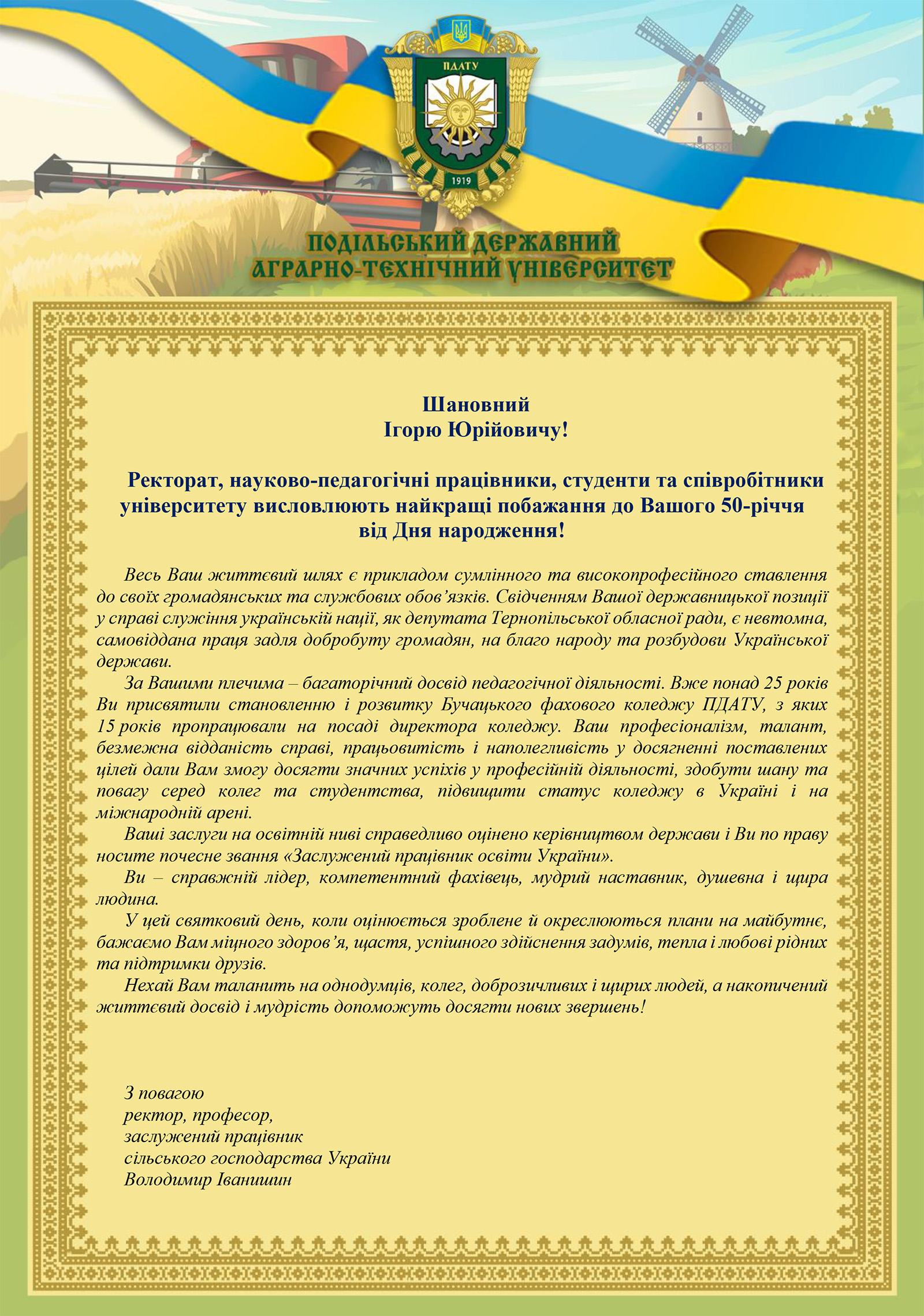 Вітаємо з ювілеєм директора Бучацького фахового коледжу ПДАТУ Леськова Ігоря Юрійовича!