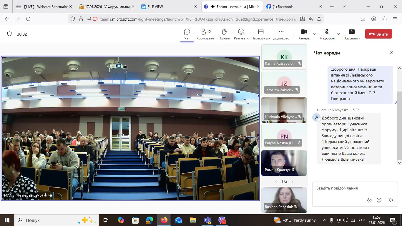 17.01.2026 року на базі Міжнародної академії наук стосованих у Ломжі відбувся IV форум молодих науковців. Із вітальним словом до учасників форуму звернувся ректор Міжнародної академії наук стосованих у Ломжі професор, доктор економічних наук, пан Іренеуш ЖУХОВСЬКИЙ, а також доктор інженерних наук, проректор із наукової роботи пані Йоланта ПУЧЕЛЬ.