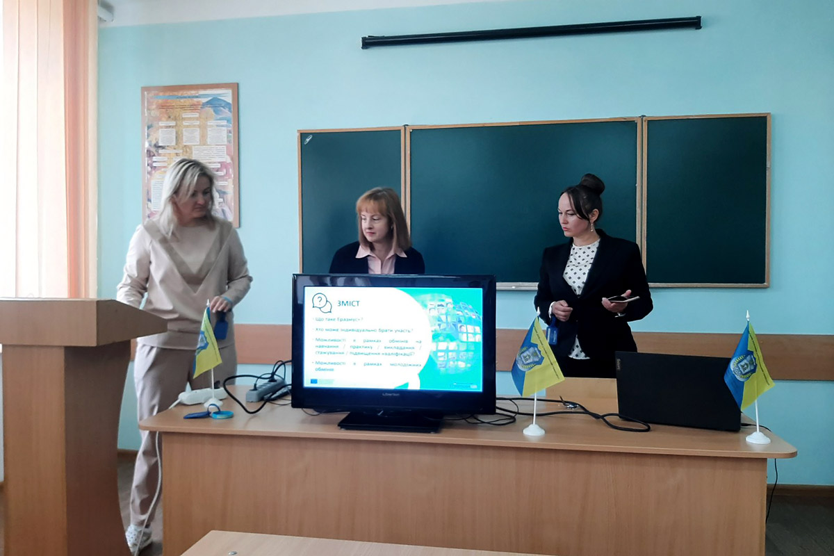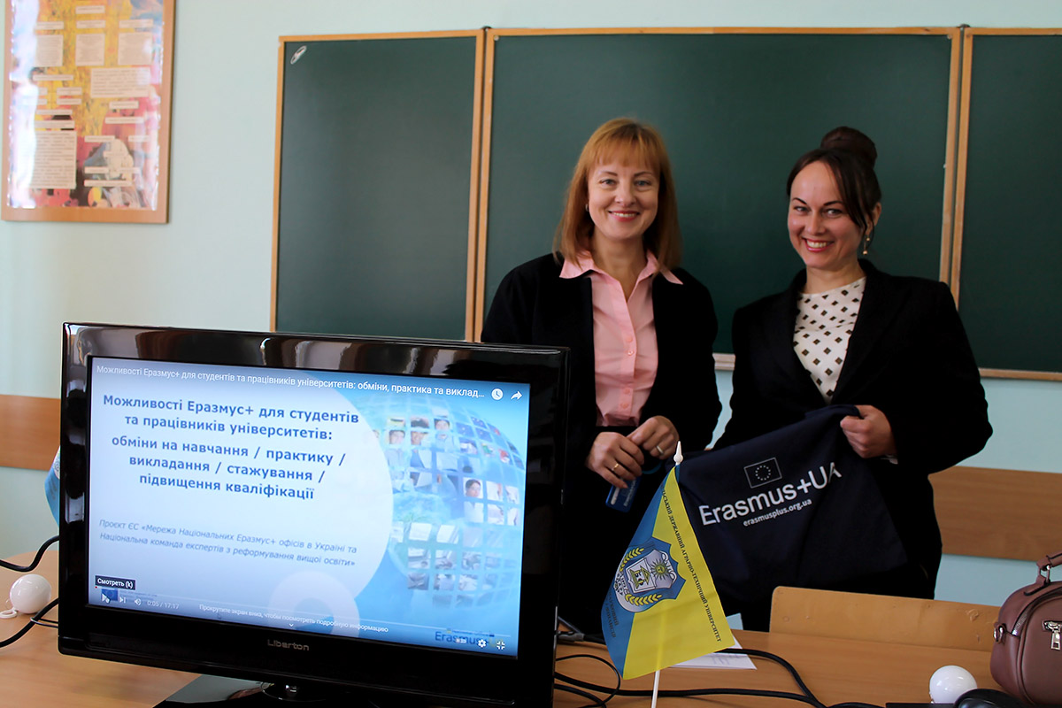 З метою долучення до святкувань днів Еразмус в Україні та розширення горизонтів індивідуальних освітніх можливостей для студентів Навчально-наукового інституту бізнесу і фінансів в рамках партнерської взаємодії ГО «Інститут соціально-економічних регіональних досліджень» (к.е.н., доцент Алла ПЕЧЕНЮК, д.е.н., доцент Наталія КОРЖЕНІВСЬКА, к.е.н., доцент Валентина БОРКОВСЬКА, к.е.н., доцент Валерій НЕСТЕРЕНКО) з Національним Еразмус+офісом в Україні за активної участі науково-педагогічних працівників кафедри економіки, підприємництва, торгівлі та біржової діяльності проведено круглий стіл «Освітні можливості програми ЄС Еразмус+».