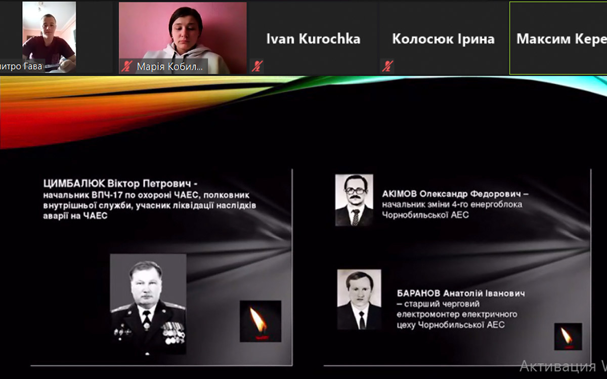 У ПДАТУ з нагоди 35-річчя від дня Чорнобильської трагедії відбулося дистанційне засідання круглого столу «Чорнобиль: 35 років пам'яті…», організованого кафедрою нормальної та патологічної морфології і фізіології, за участю директора Центру виховної роботи і соціально-культурного розвитку Куземи А.Л., фахівців Центру Ітомліної-Напорчук А.Г., Українець Н.В., голови профкому співробітників та студентів Ліщук С.Г., викладачів кафедри НПМіФ Цвігуна О.А., Савчук Л.Б, Добровольського В.А., Каспрова Р.В.,Чепурної В.А., Пливанюка Є.В., та кафедри теоретико-правових і соціально-гуманітарних дисциплін Колосюк І.А., представників студентського Парламенту університету.