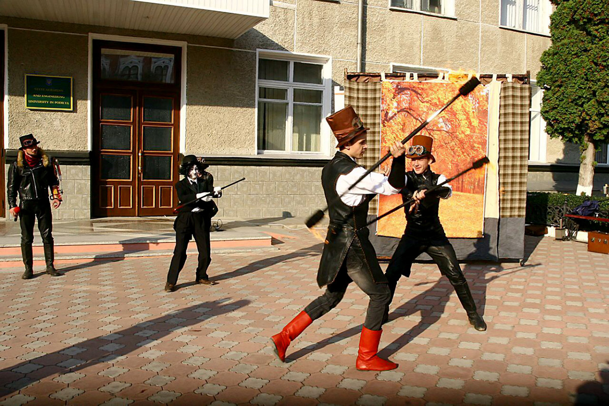 Завершився фестиваль-конкурс – театральним дійством на майдані перед головним корпусом університету – виставою театру «Лінк» «ТІНО» казки-феєрії у стилі стімпанк.