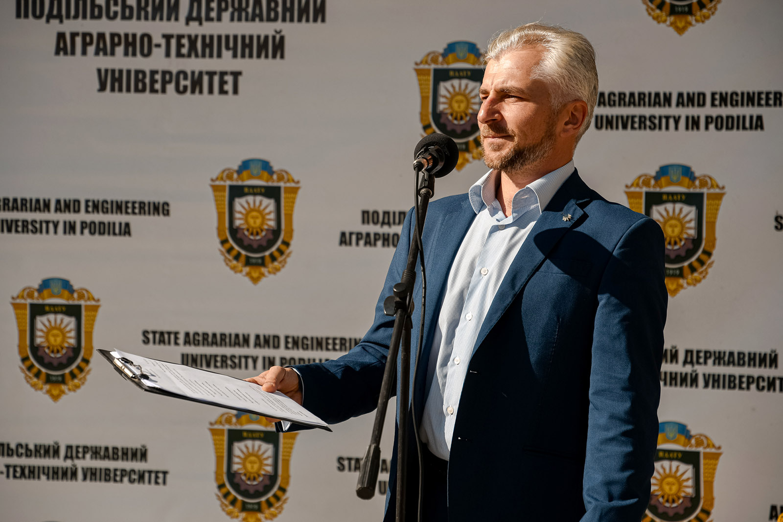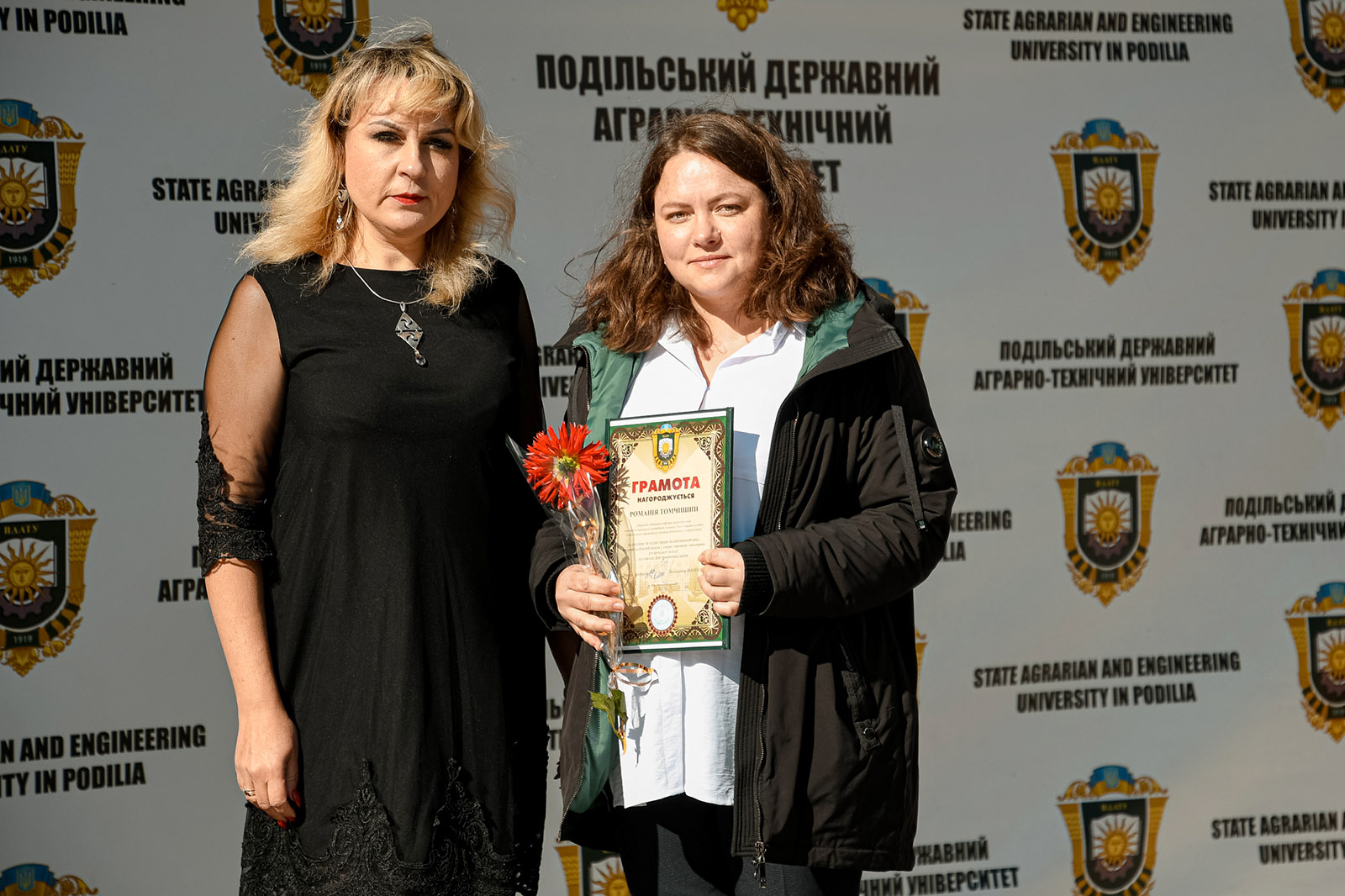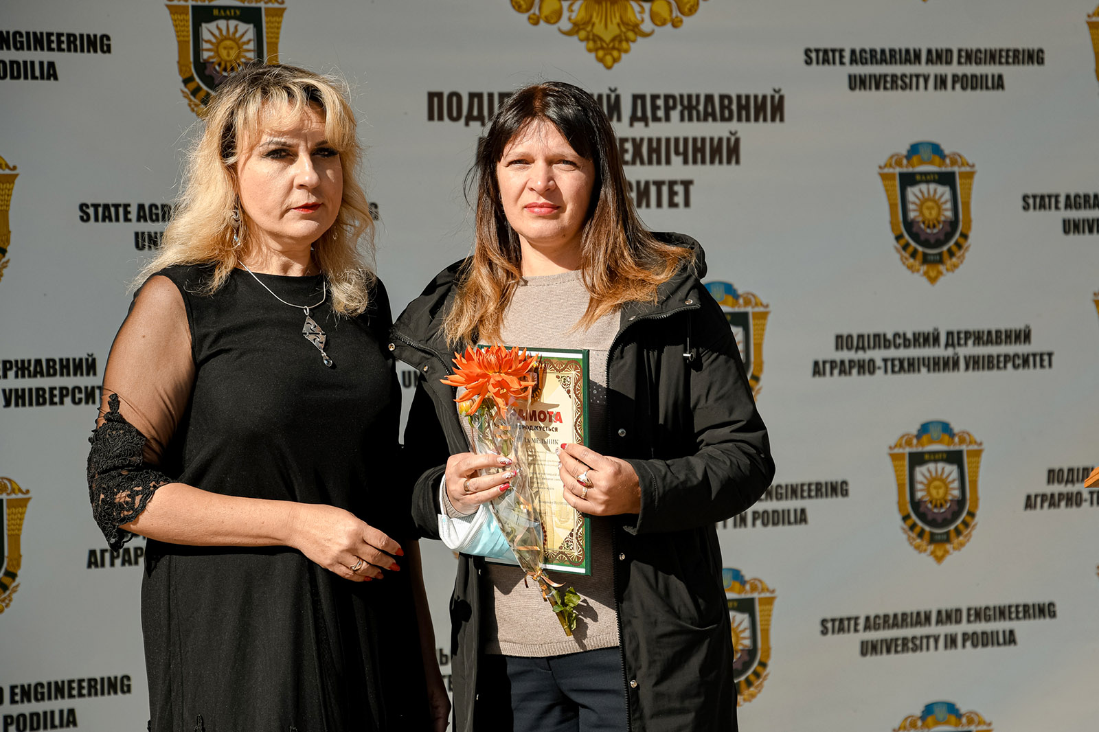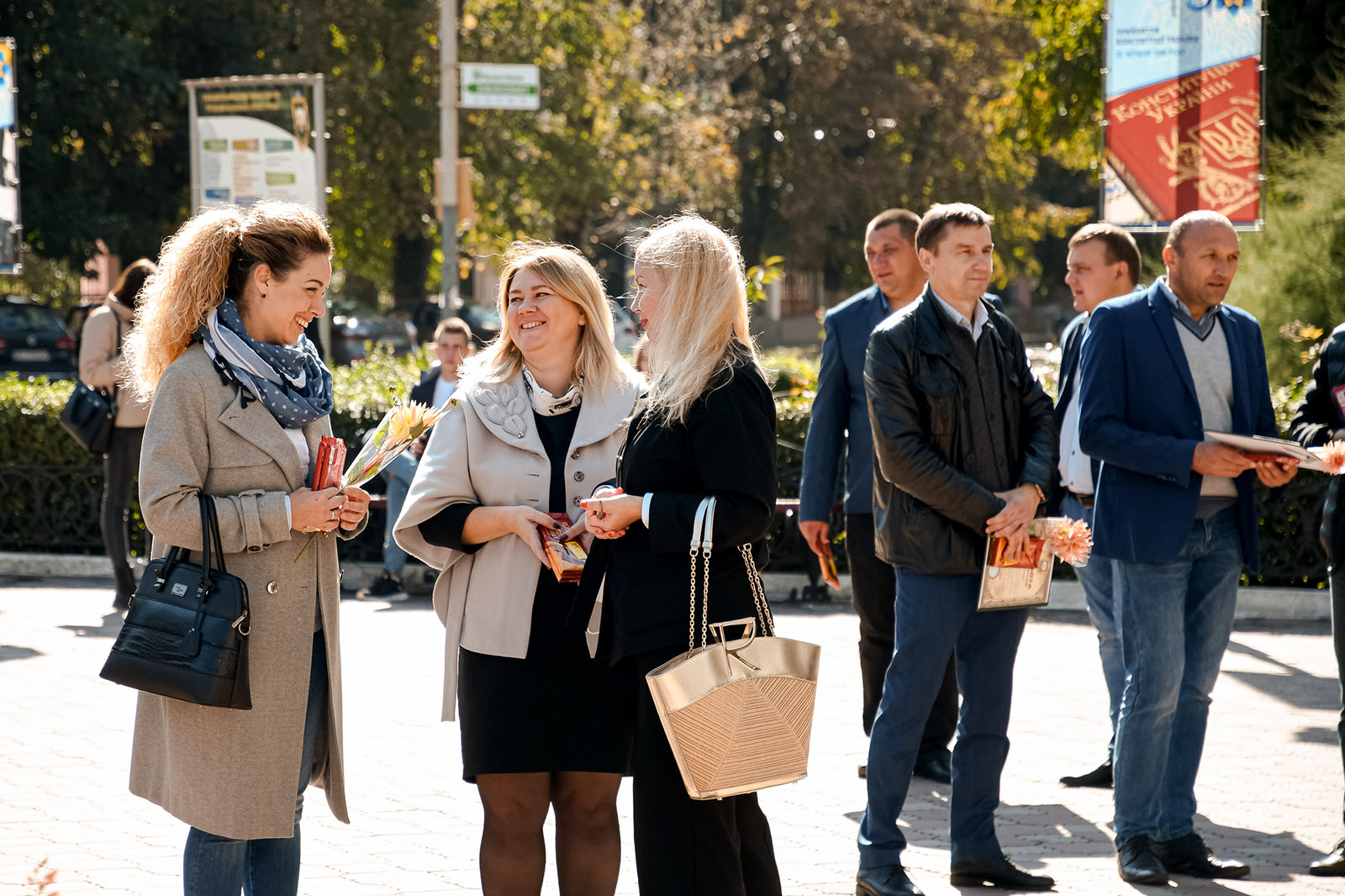 Із дотриманням карантинних вимог 1 жовтня у Подільському державному аграрно-технічному університеті відбулися урочистості. На площі, біля головного корпусу, під музичний супровід, студенти зустрічали викладачів, даруючи квіти, гарний настрій та щирі побажання.