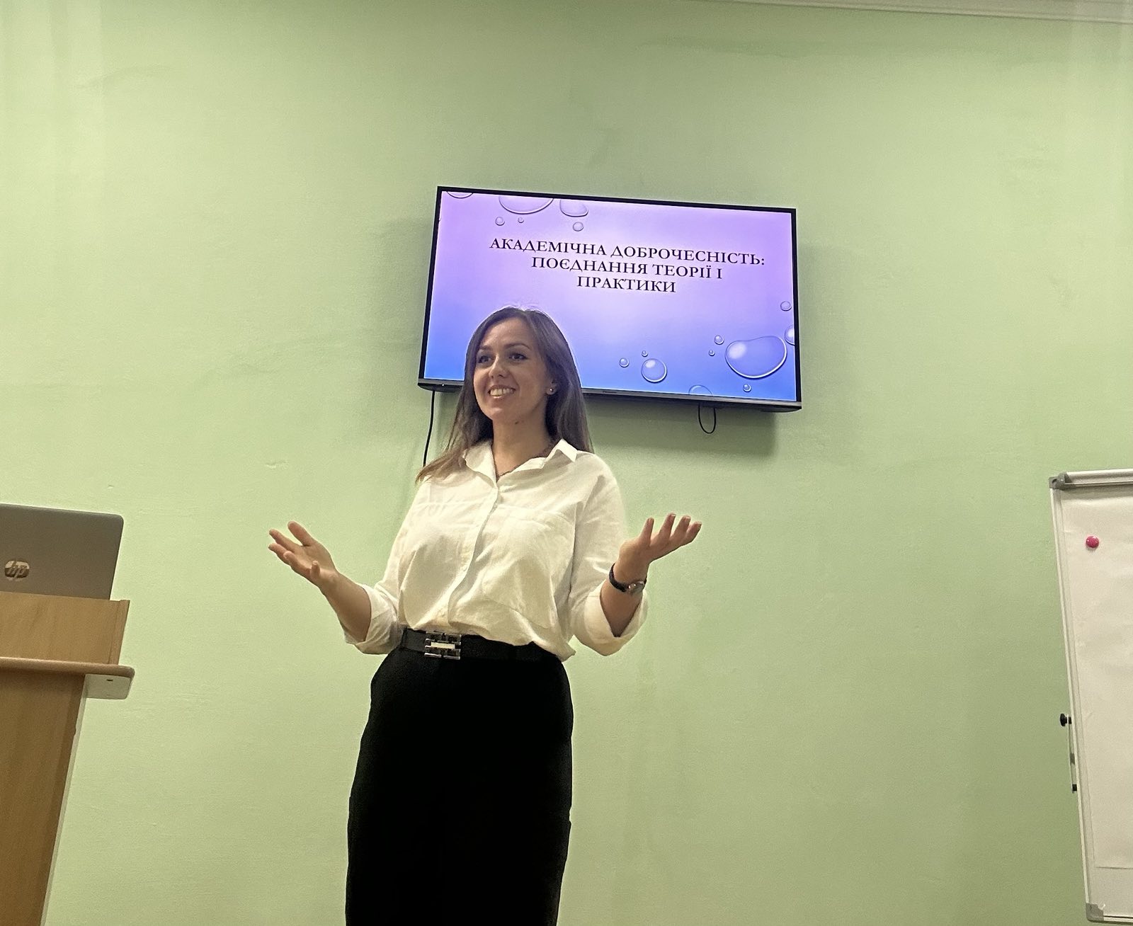 Ульяна ЧАЙКОВСЬКА, асистент кафедри української мови доповіла про основи академічного письма та доброчесності, зазначила види академічної недоброчесності та методи боротьби з нею.