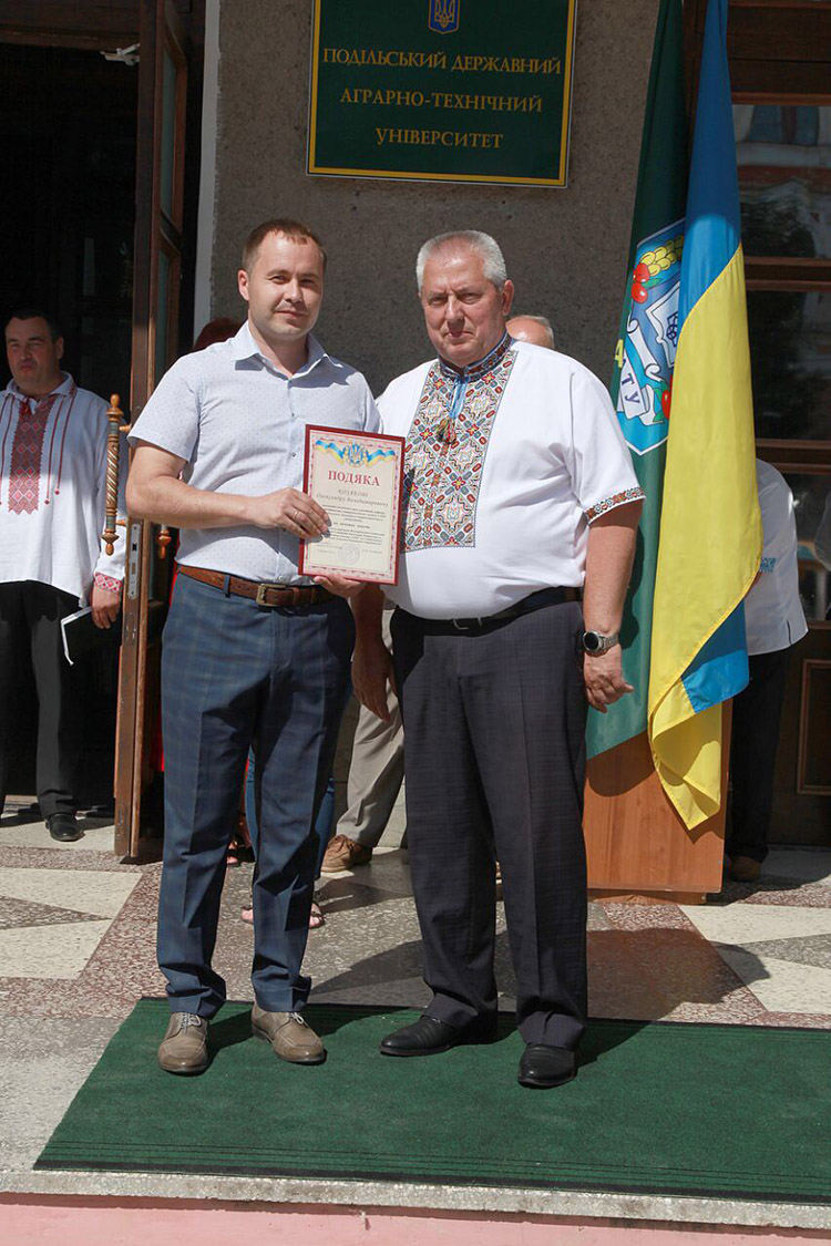 Усіх привітали зі святом і Почесні гості: заступник голови районної ради – Віктор Єрменчук, вручивши науково-педагогічним працівникам (В. Левицькій, Ю. Павельчуку, Т. Приліпко) грамоти до Дня науки; генеральний директор ТОВ «Український кристал» - Володимир Юр'єв та у знак достатку та процвітання навчального закладу передав ректору університету запашний коровай; начальник відділу агропромислового розвитку Кам'янець-Подільської райдержадміністрації – Надія Сузанська.