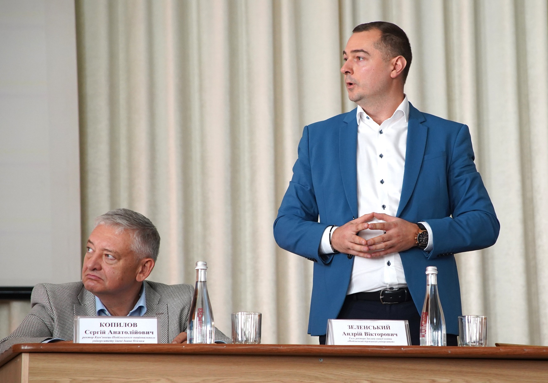 З доповідями про важливість постійного підвищення якості освіти та забезпечення безпеки учасників освітнього процесу в умовах воєнного стану виступили директор Департаменту освіти та науки Хмельницької обласної державної адміністрації Олександр ПУНДА й голова Ради ректорів закладів вищої освіти Хмельницької області, ректор Хмельницького національного університету Сергій МАТЮХ.