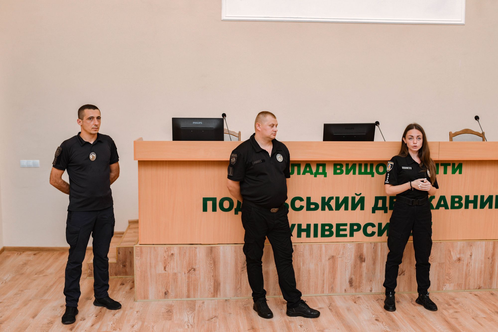 Зустріч відбулась 20 вересня 2023 року в стінах університету. З вітальним словом до усіх присутніх звернулась проректор з навчальної, науково-інноваційної та міжнародної діяльності Оксана БЯЛКОВСЬКА, далі із здобувачами спілкувались: Вікторія СІНЬКОВА - старший інспектор СЮП ВП Кам’янець-Подільського РУП ГУНП в Хмельницькій області, капітан поліції, Петро ПРИДРУГА - старший інспектор СЮП ВП Кам’янець-Подільського РУП ГУНП в Хмельницькій області, капітан поліції, Денис СТРЕМІНСЬКИЙ - інспектор СЮП ВП Кам’янець-Подільського РУП ГУНП в Хмельницькій області старший лейтенант поліції.