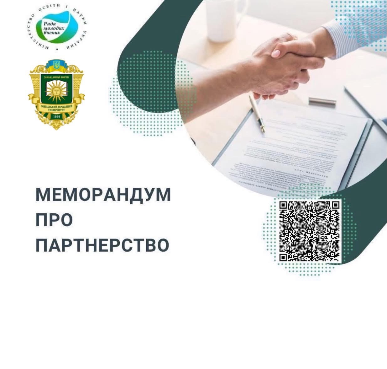 Рада молодих вчених Закладу вищої освіти «Подільський державний університет» приєдналася до Меморандуму про партнерство, ініційованого Радою молодих вчених при Міністерстві освіти і науки України, що стало важливим кроком у розвитку співпраці молодої наукової спільноти на національному рівні.