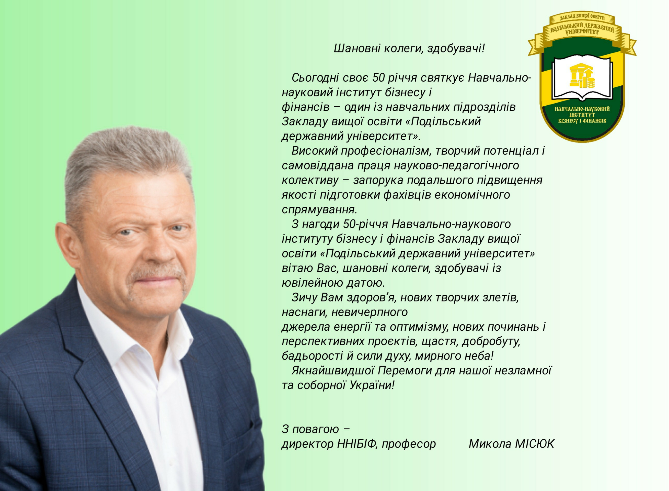 Вітання з 50-річчям ННІБІФ від ректора Іванишин В.В.