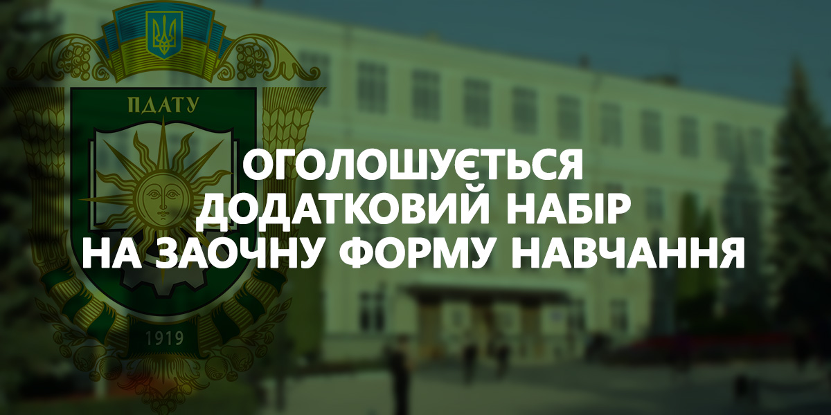 Подільський державний аграрно-технічний університет оголошує додатковий набір для бажаючих здобути освітній ступінь бакалавра або магістра за заочною формою навчання.