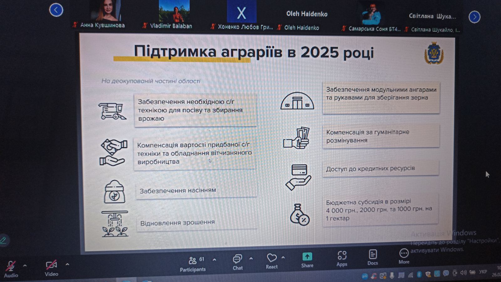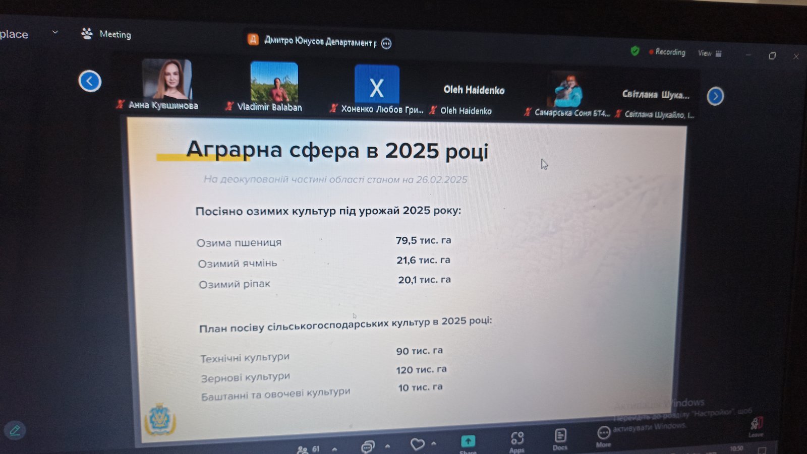 Доповідачі проінформували про стан господарювання в умовах Херсонської і Миколаївської областей в умовах війни, ґрунтово-погодні ризики, проблеми та перспективи сільськогосподарського виробництва в умовах півдня України.