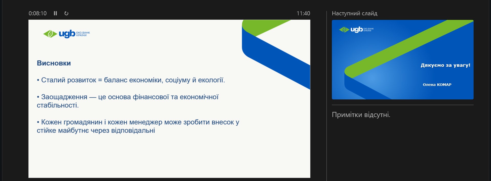 Учасники заходу активно долучалися до обговорення, аналізували запропоновані кейси, ставили запитання та розглядали можливості застосування представлених методик у майбутній професійній діяльності. Проведений семінар став важливим елементом професійної підготовки здобувачів, сприяв посиленню міждисциплінарних зв’язків, розширенню практико-орієнтованого досвіду й поглибленню розуміння ролі фінансової культури та відповідального ресурсного менеджменту у забезпеченні сталого розвитку суспільства й економіки України.