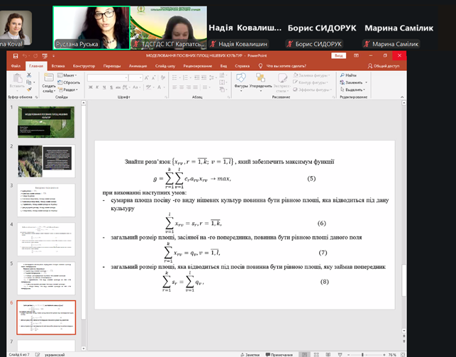 З доповідями виступили: д-р екон. наук, професор ВОЛОЩУК Катерина Богданівна, кандидат с.-г. наук, доцент ВІЛЬЧИНСЬКА Людмила Аліковна, д-р екон. наук, доцент ЗАХОДИМ Марина Володимирівна, д-р екон., наук, професор ВОЛОЩУК Юлія Олександрівна, кандидати екон. наук, доценти НІСХОДОВСЬКА Олена Юріївна та КОВАЛЬ Нонна Василівна.