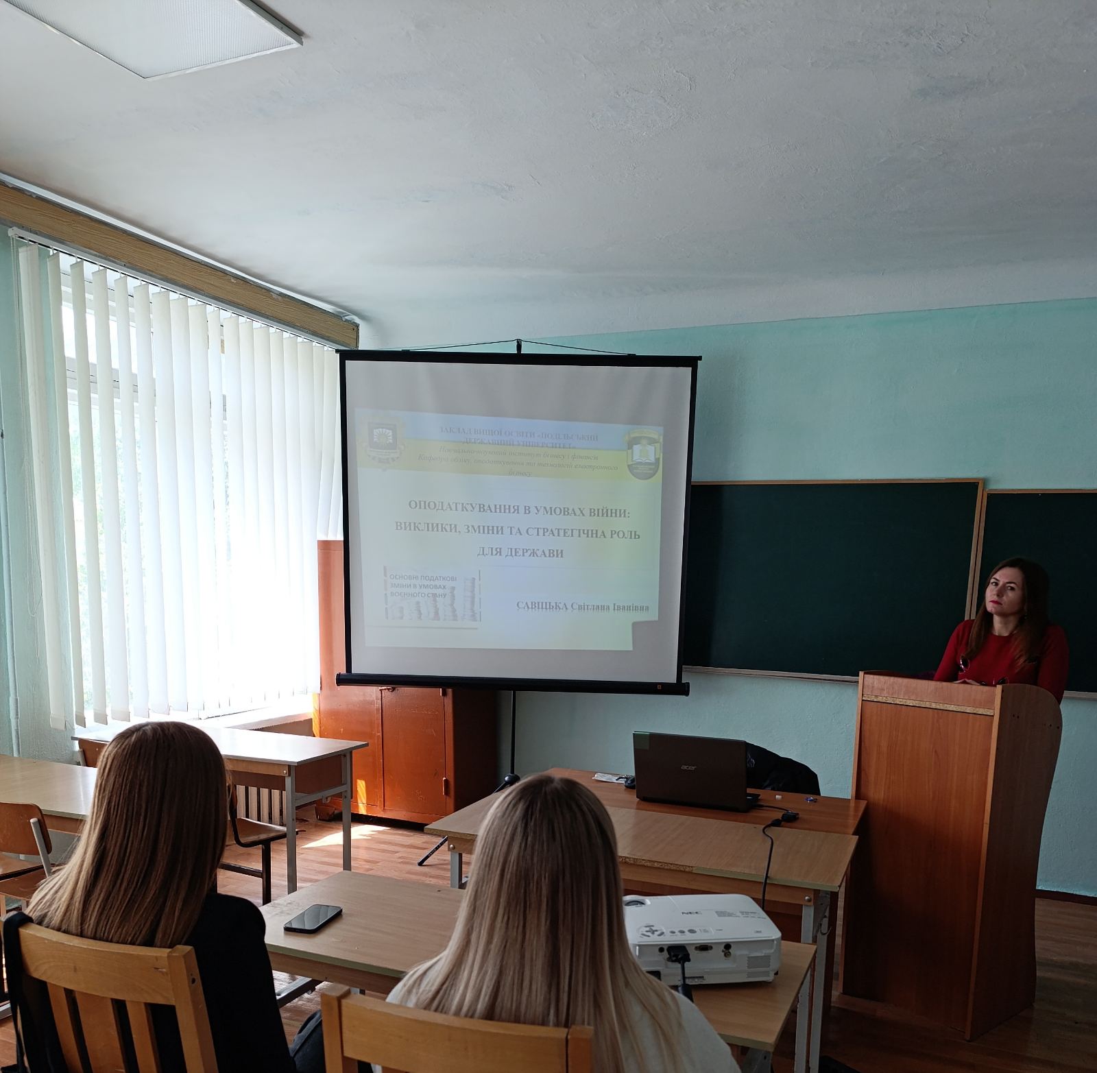13 травня доцент кафедри обліку, оподаткування та технологій електронного бізнесу Світлана САВІЦЬКА провела науково-методичний семінар на тему: «Оподаткування в умовах війни: виклики, зміни та стратегічна роль для держави».