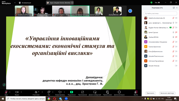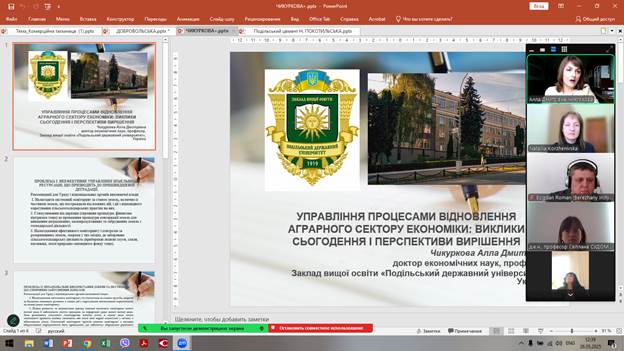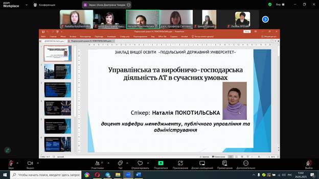 26 травня 2025 р. в онлайн режимі відбувся науковий міжвузівський семінар на тему: «Синергія управління, адміністрування та економіки: сучасні підходи і практики». Співорганізаторами заходу були ЗВО «Подільський державний університет» і ВП НУБіП України «Бережанський агротехнічний інститут».
