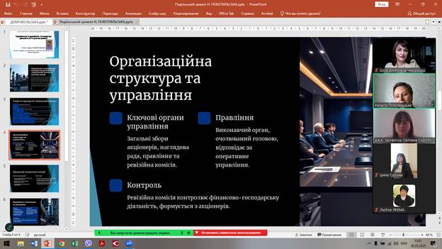 Наталія ПОКОТИЛЬСЬКА, канд. екон. наук, доцент кафедри менеджменту, публічного управління та адміністрування. Наталія ПОКОТИЛЬСЬКА презентувала кейс АТ «Подільський цемент», аналізуючи управлінські рішення та їх економічні результати. Вона розкрила стратегії адаптації до сучасних ринкових викликів.
