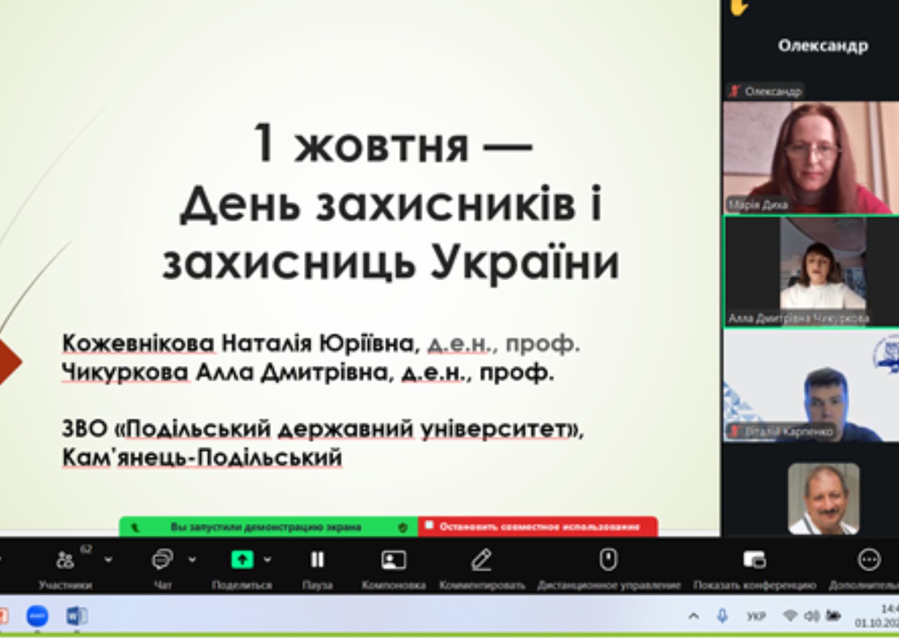 Представники ЗВО «Подільський державний університет» Наталія КОРЖЕНІВСЬКА, д.е.н., проф.; Алла ЧИКУРКОВА, д.е.н., проф.; Ілля ОСАДЧУК, аспірант спеціальності 073 «Менеджмент» присвятили свої виступи Дню захисників та Захисниць України. Вони зазначили, що це свято символізує любов і повагу українців до оборонців і визволителів рідної землі, до тих, хто сьогодні стоїть на шляху ворогів і дає їм гідну відсіч, боронить незалежність держави.