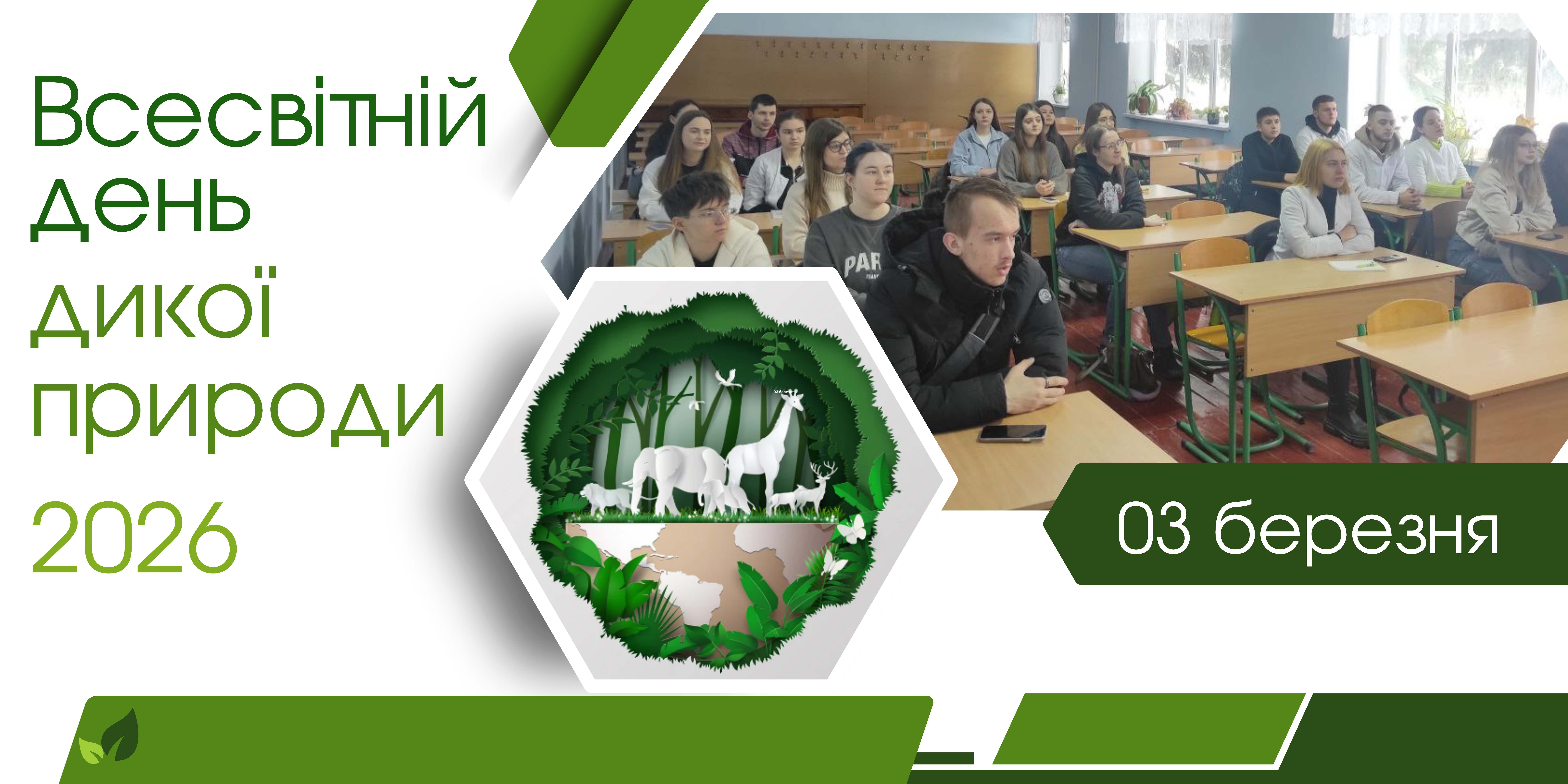 3 березня світ відзначає Всесвітній день дикої природи (World Wildlife Day), встановлений Резолюцією ООН на честь підписання Конвенції СІТЕС 1973 року. Ця дата є символом боротьби з нелегальною торгівлею рідкісними видами та нагадуванням про нашу відповідальність за збереження біорізноманіття планети. Для наукової спільноти ЗВО «ПДУ» цей день підкреслює критичну необхідність захисту флори й фауни, що стрімко зникають під тиском людської діяльності.