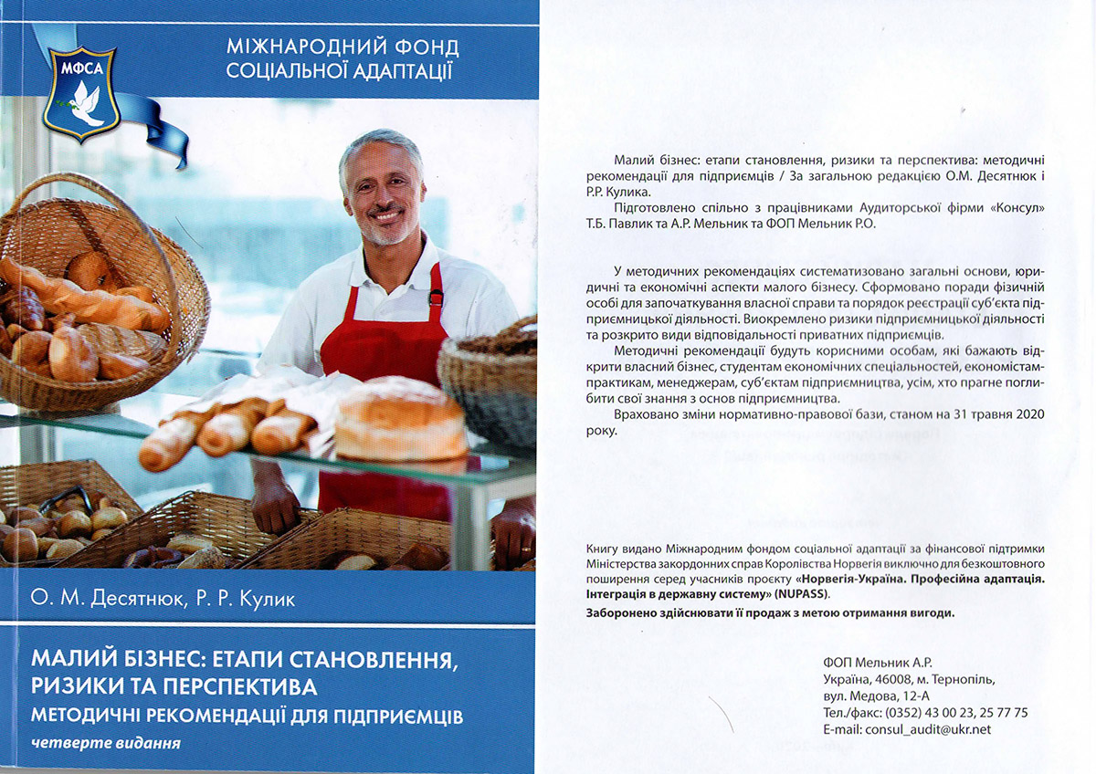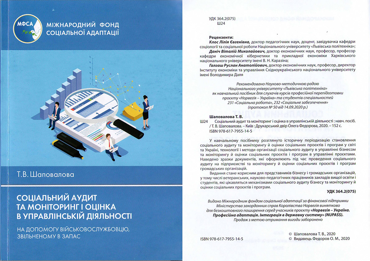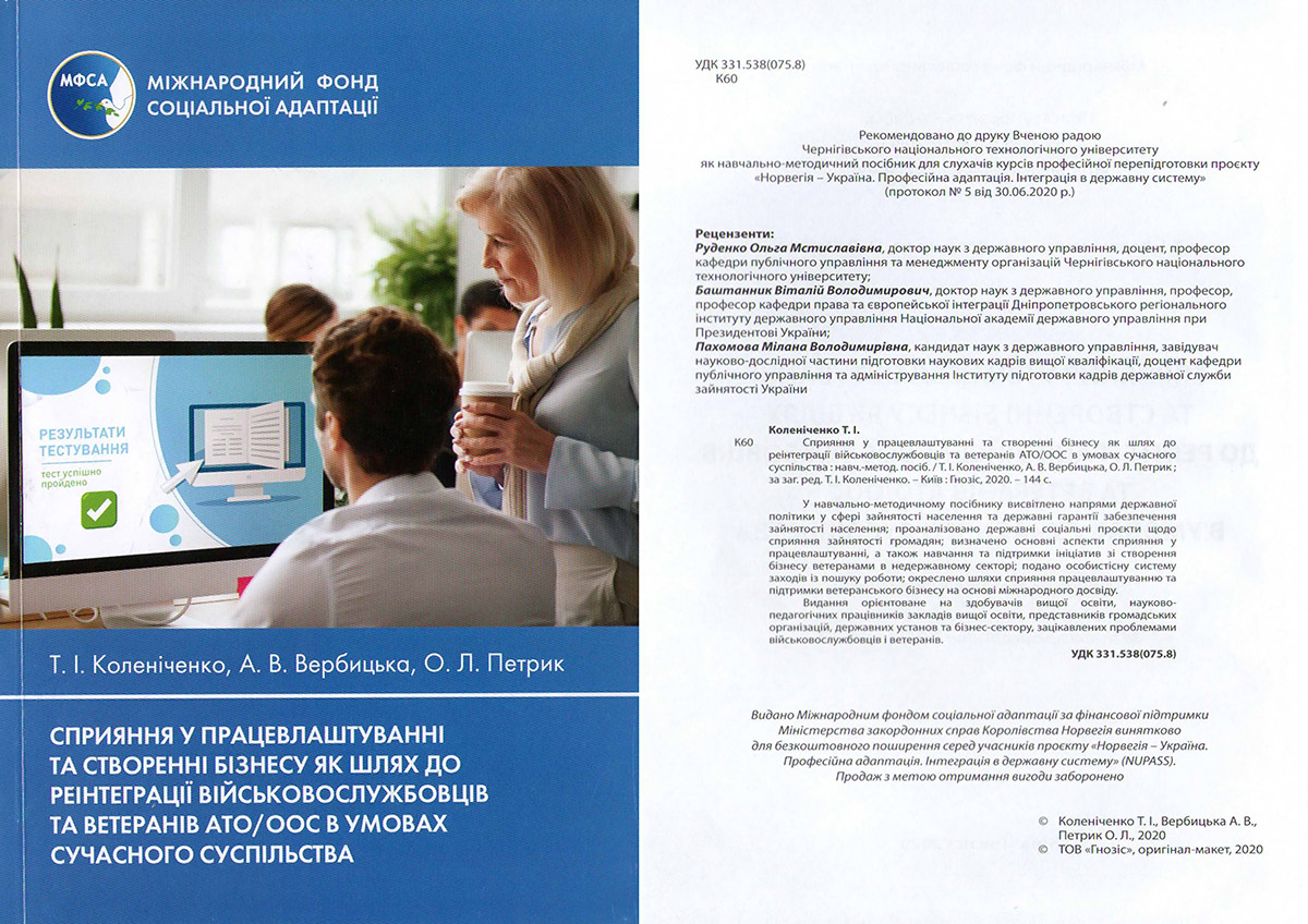 До неї, зокрема, увійшли посібники «Соціальний аудит та моніторинг і оцінка в управлінській діяльності» за редакцією Т. В. Шаповалової, «Малий бізнес: етапи становлення, ризики та перспектива: методичні рекомендації для підприємців» за загальною редакцією О.М. Десятнюк і Р.Р. Кулика, «Сприяння у працевлаштуванні та створенні бізнесу як шлях до реінтеграції військовослужбовців та ветеранів АТО/ООС в умовах сучасного суспільства» Т. І. Коленіченко, «Інноваційне підприємництво» О.Є. Гудзя, а також розроблена громадською організацією «Юридична Сотня» «Пам'ятка учасникам протидії збройній агресії Російської Федерації проти України».