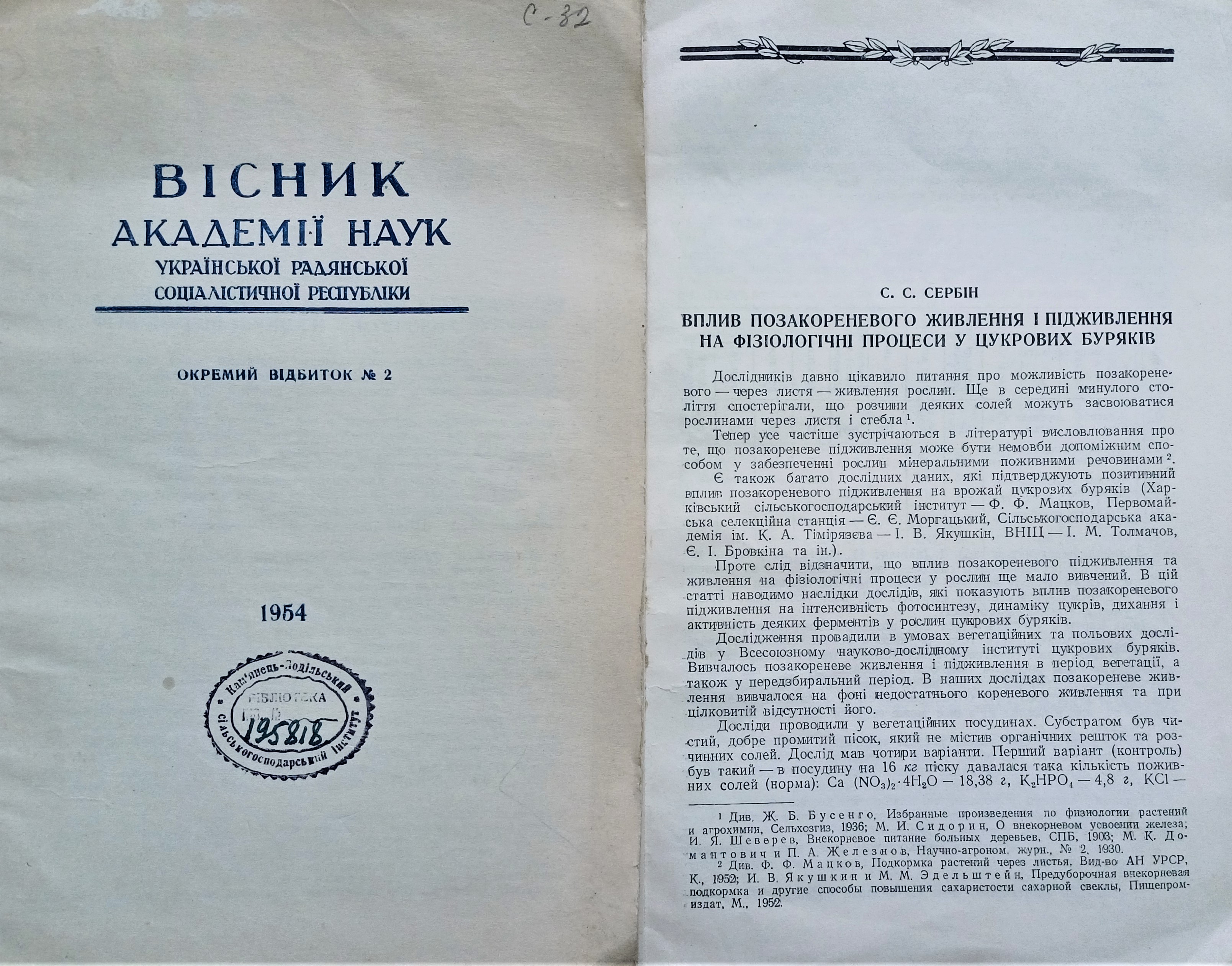 У науковій бібліотеці зберігаються основні наукові праці Семена Сербіна, які є цінними для сучасних наукових досліджень у галузі аграрних наук та продовольства.
