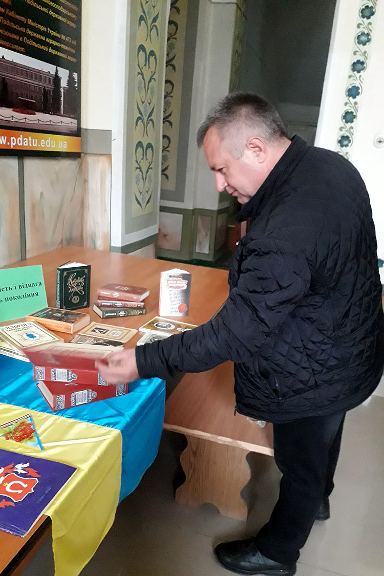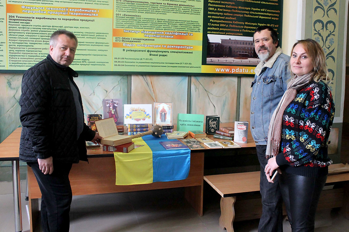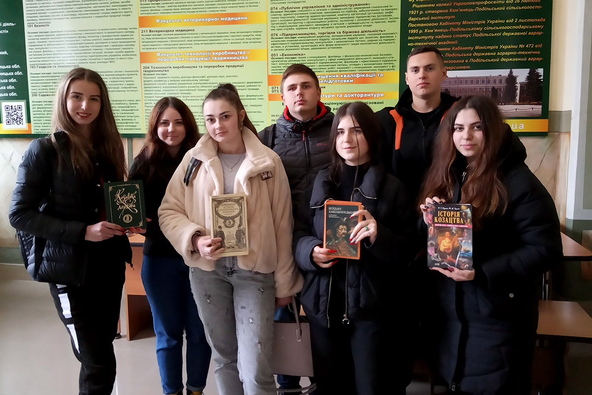 Продовжуючи традиції і з нагоди Свята колектив наукової бібліотеки ПДАТУ створив книжкову виставку, присвяченому історії козацтва. Її сформовано з книг, що зберігаються в нашій книгарні. Приємно, що першими відвідувачами презентації стали студенти 1-го курсу спеціальностей «Економіка», «Агроінженерія» та «Ветеринарна медицина».