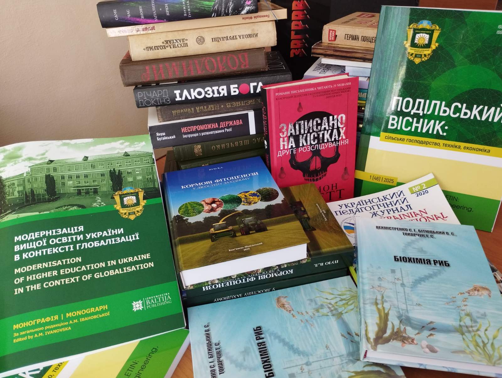 У цих складних умовах бібліотечні фонди нашої книгозбірні поповнюються в основному силами керівництва і професорсько-викладацького складу ЗВО «ПДУ». Зокрема, в травні та червні 2025 року бібліотечний фонд збагатився науковими, навчальними та художніми виданнями; кафедри та науковці подарували бібліотеці 28 книг, серед яких монографії, начальні та навчально-методичні посібники і новітня художня література, яка користується попитом у здобувачів вищої освіти та мешканців міста.