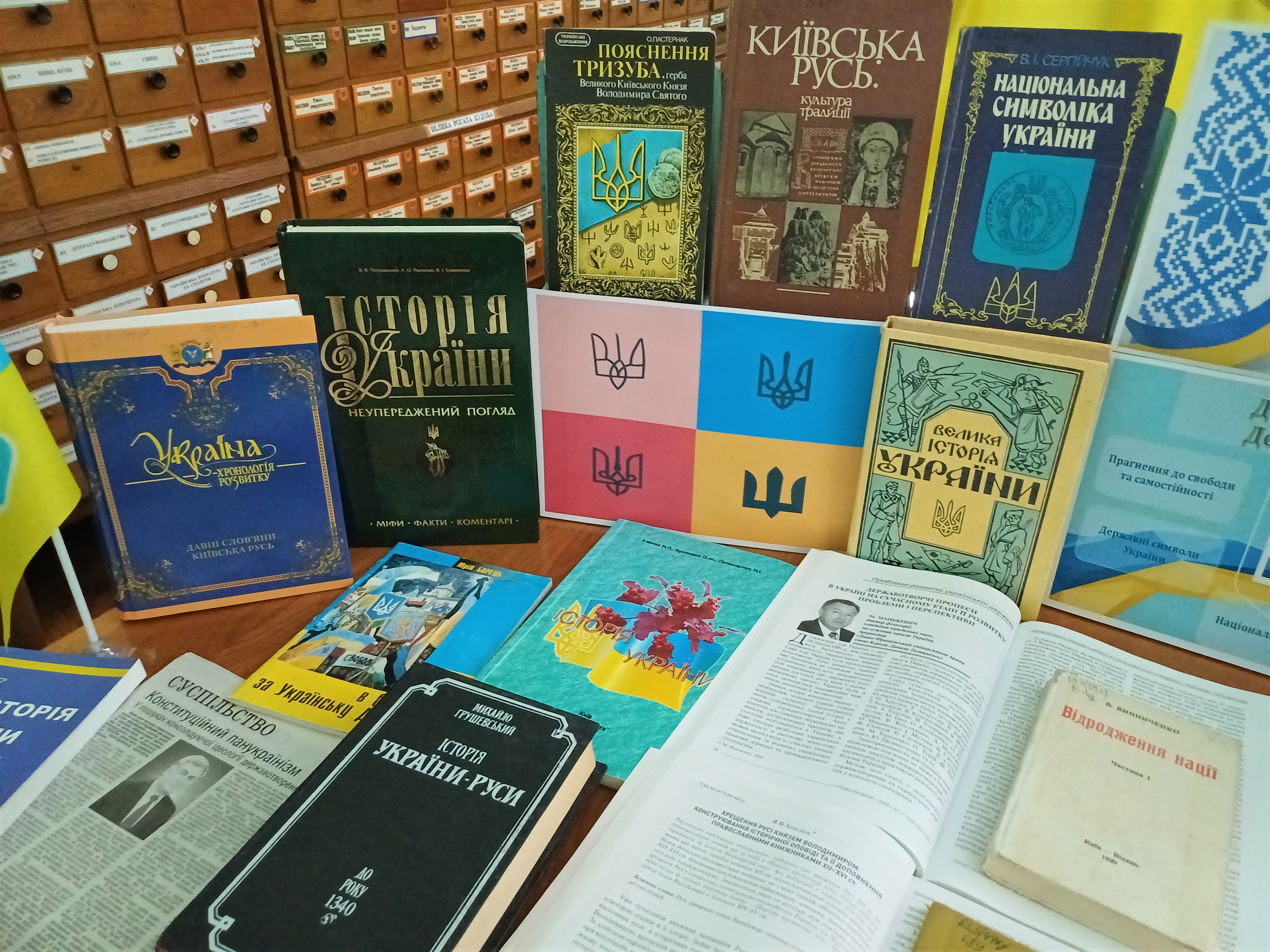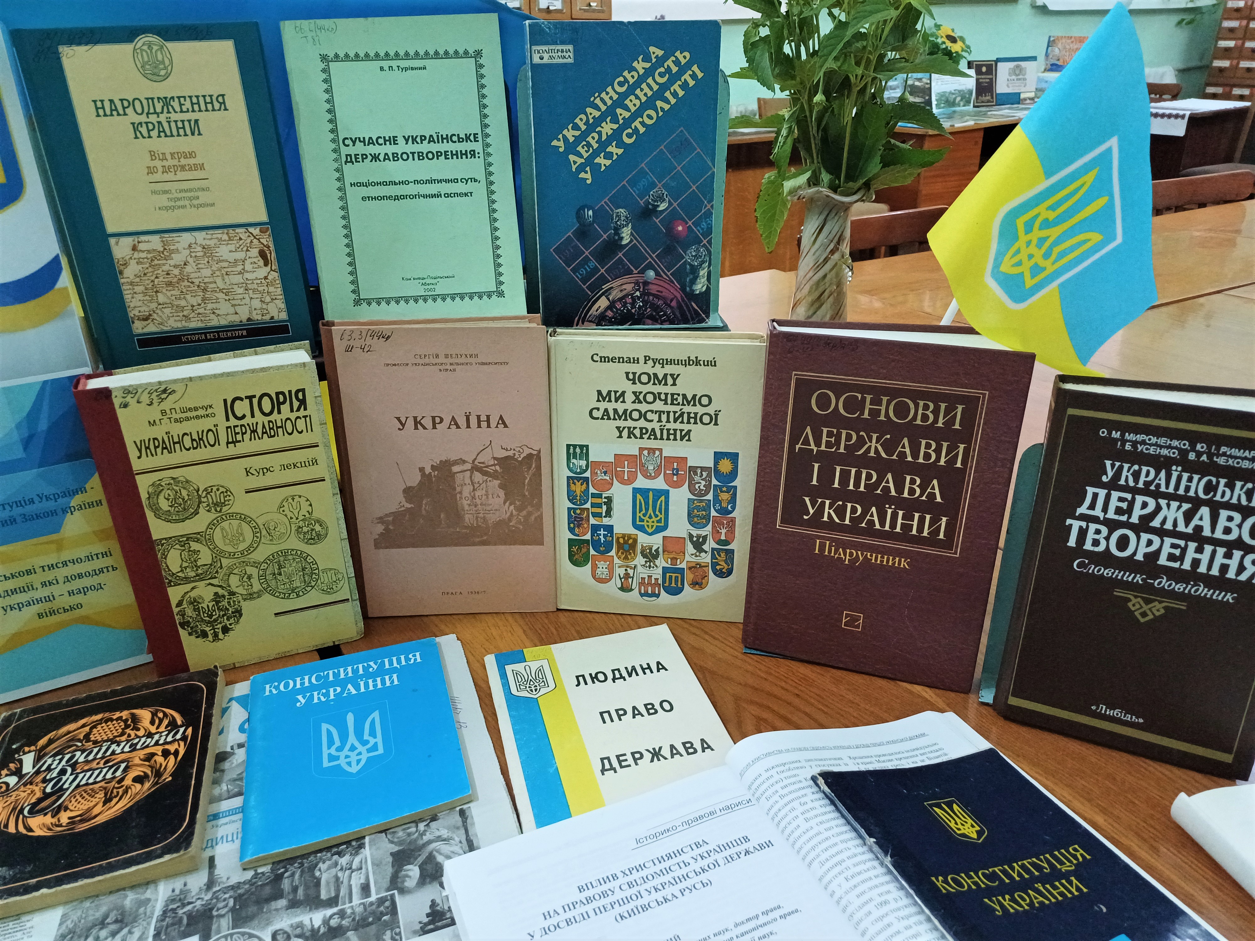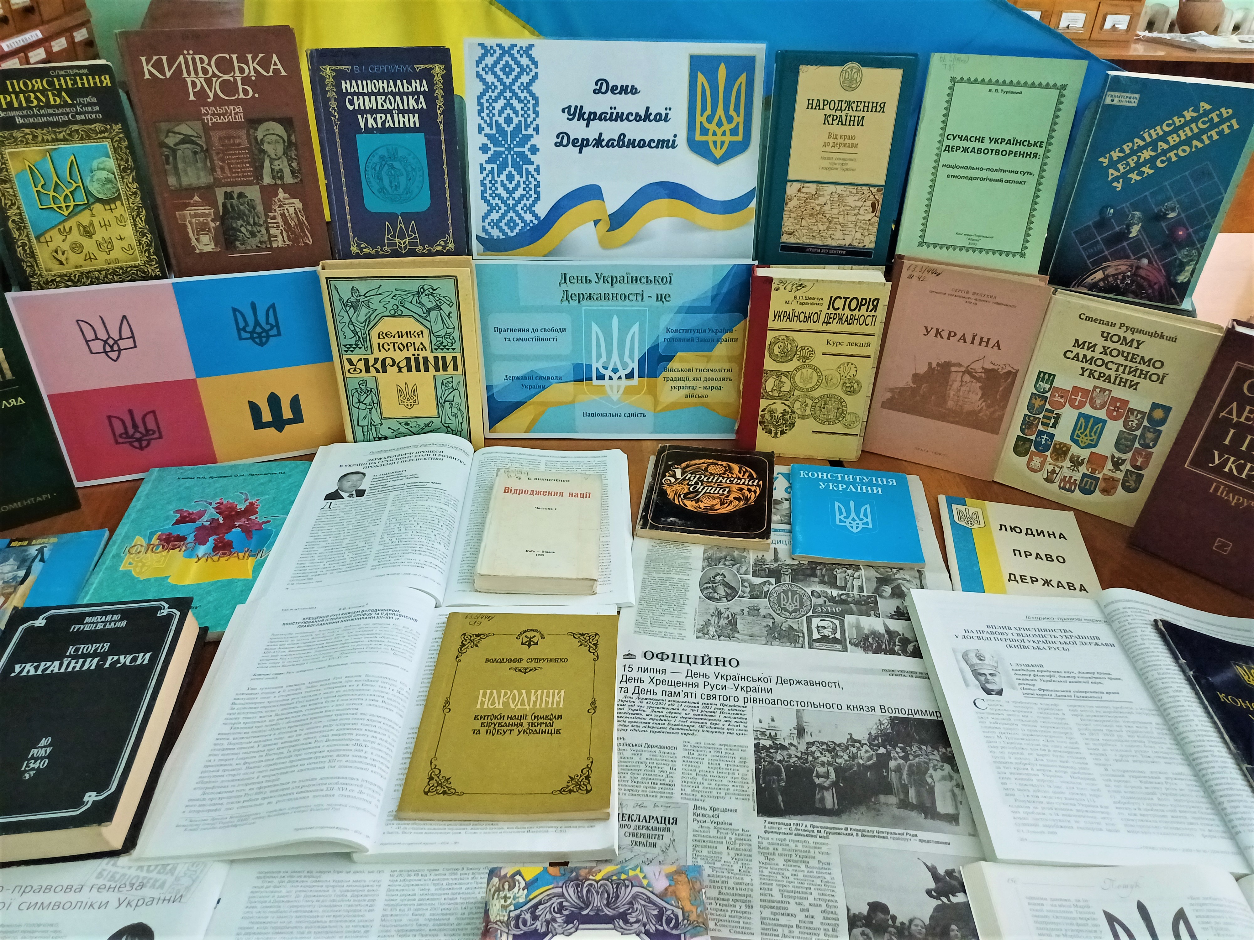 До Дня Української Державності у науковій бібліотеці експонується тематична книжкова виставка. На виставці представлені видання із фонду наукової бібліотеки, а саме наукова, історична, юридична література, а також публікації в періодичних та продовжуваних виданнях. Представлені матеріали відображають історію творення, становлення та розвиток української державності від княжої доби – Київської Русі до проголошення Незалежності України.