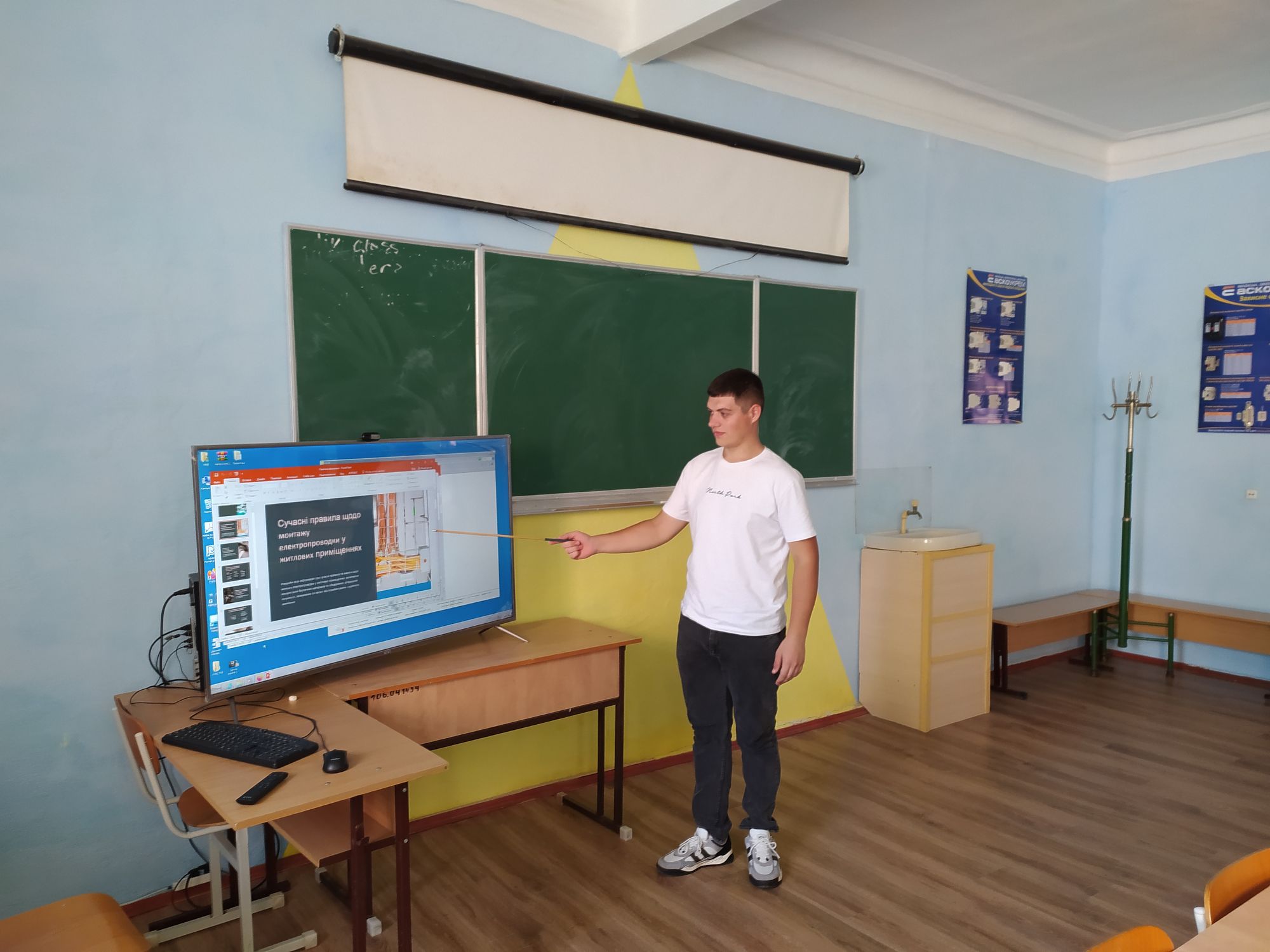На базі кафедри енергозберігаючих технологій та енергетичного менеджменту та кафедри електротехніки, електромеханіки і електротехнологій факультету енергетики та інформаційних технологій 14 вересня 2023 року була проведена практична конференція за результатами проходження виробничої електромонтажної практики здобувачами вищої освіти 3 курсу освітнього ступеня «Бакалавр» спеціальності 141 «Електроенергетика, електроніка та електромеханіка». З вітальним словом до здобувачів вищої освіти звернулась декан факультету енергетики та інформаційних технологій, професорка МИХАЙЛОВА Л.М..