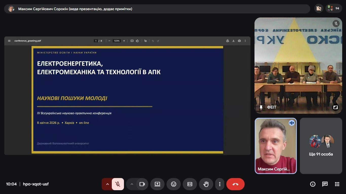 Здобувачі вищої освіти факультету енергетики та інформаційних технологій Закладу вищої освіти «Подільський державний університет» взяли участь в знаковій події – ІV Всеукраїнській науково-практичній конференції «Електроенергетика, електромеханіка та технології в АПК: наукові пошуки молоді», яка відбулася 8 квітня 2026 року в Державному біотехнологічному університеті, м. Харків. Захід об’єднав сотні студентів, аспірантів та молодих дослідників, які презентували свої бачення модернізації агропромислового комплексу.