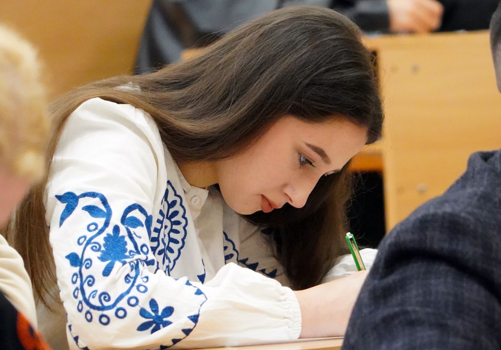 Привітала всіх учасників цієї урочистої події завідувачка кафедри української мови Оксана Максимець, подякувавши кожному присутньому за те, що долучилися до такого важливого заходу, адже диктант – це не про помилки, а про усвідомлення того, наскільки ми зараз єдині.