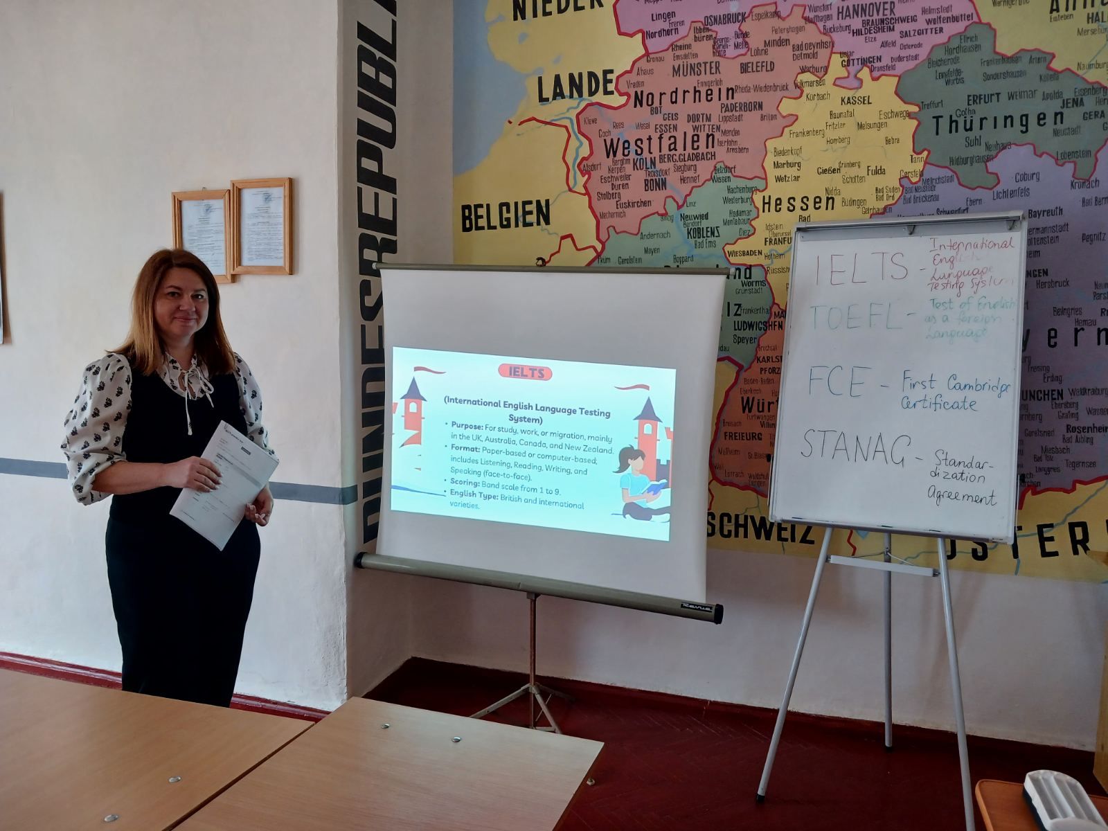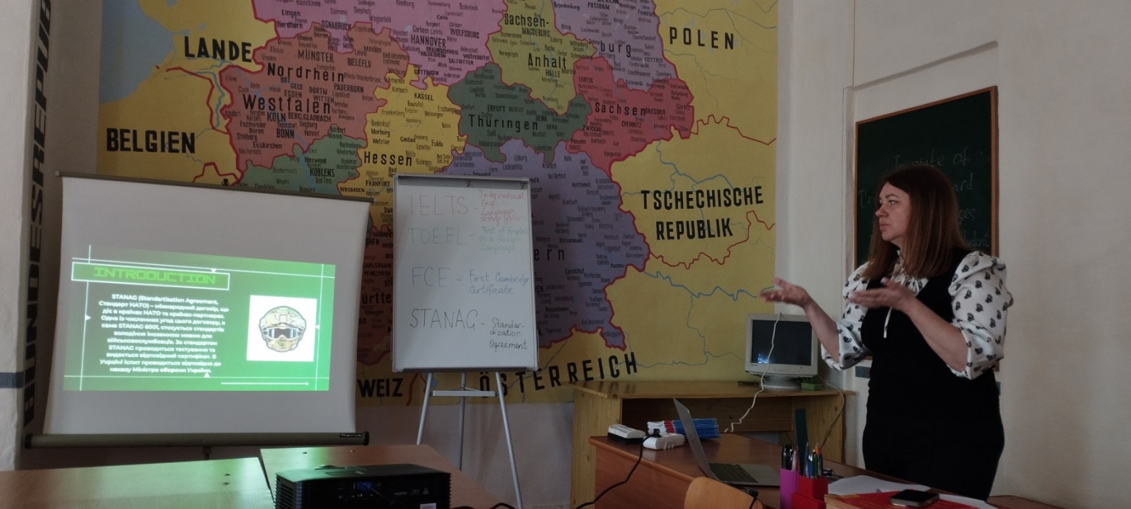 У ході семінару були розглянуті особливості структури та вимог до складання найпоширеніших міжнародних мовних іспитів: IELTS, TOEFL, FCE, а також стандартизованого іспиту STANAG 6001, що є актуальним для військовослужбовців.