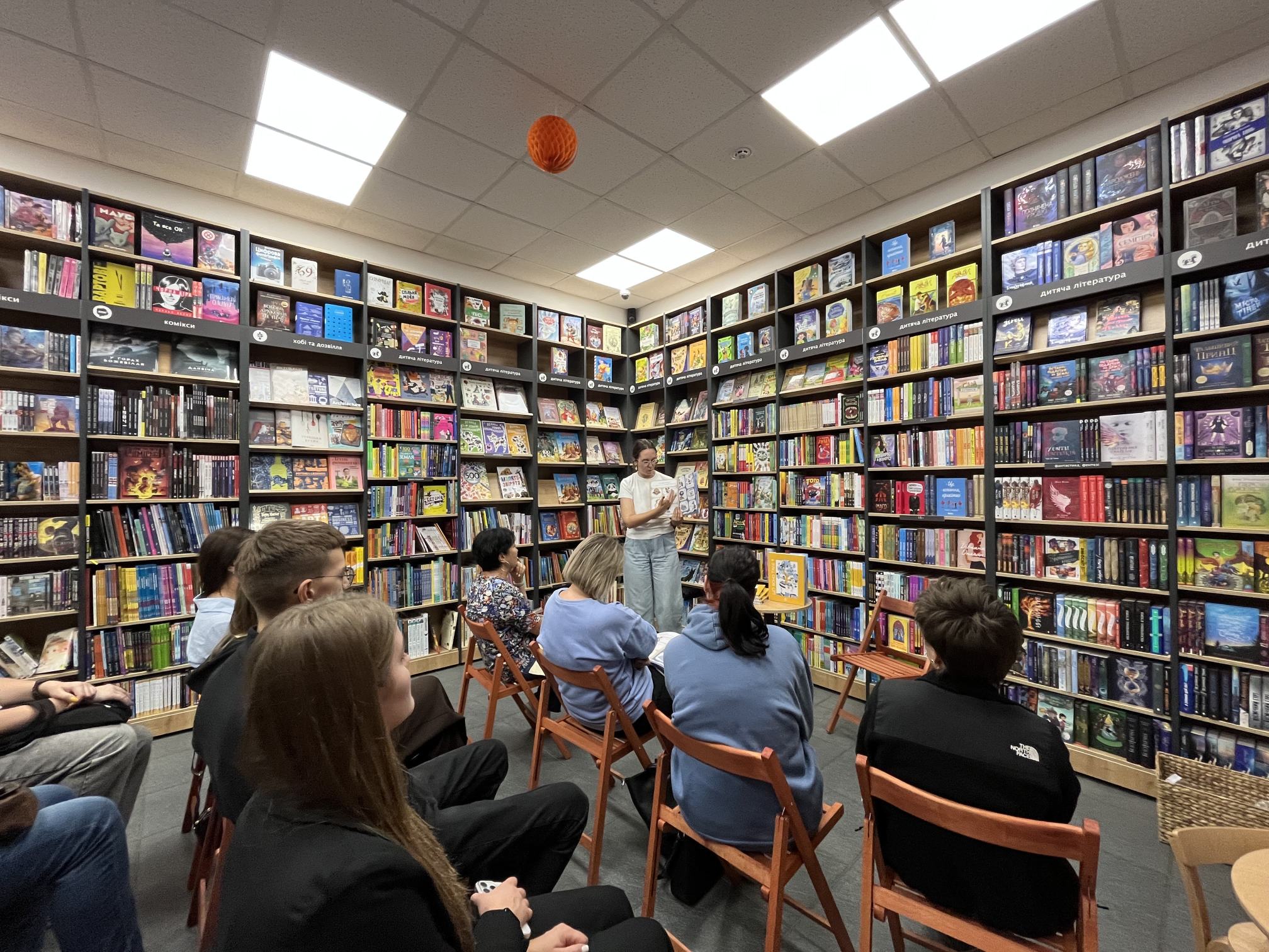 Саме тому викладачі кафедри української мови вбачають свою місію в такій організації навчального процесу, щоб він був єдиною функційною системою, яка дозволяла б студентам розуміти й цілісно уявляти динамічну модель своєї майбутньої професійної діяльності, удосконаленню комунікативних навичок у різних життєвих ситуаціях. Для майбутнього фахівця справді необхідним є вміння презентувати результати своєї діяльності широкому загалові, до того ж у різних формах: у вигляді допису в інтернет-виданні, експертного коментаря в соціальних мережах або на запит мас-медіа, доповіді для популяризації певних питань, виступу перед різними аудиторіями тощо. Саме тому й була організована зустріч 16 вересня із сучасною письменницею, креативною доповідачкою Анастасією Євдокимовою у Книгарні «Є». У студентів була можливість ознайомитися з книжковими новинками, зануритися в довколакнижкові події, поставити питання авторці, обгворити почуте.