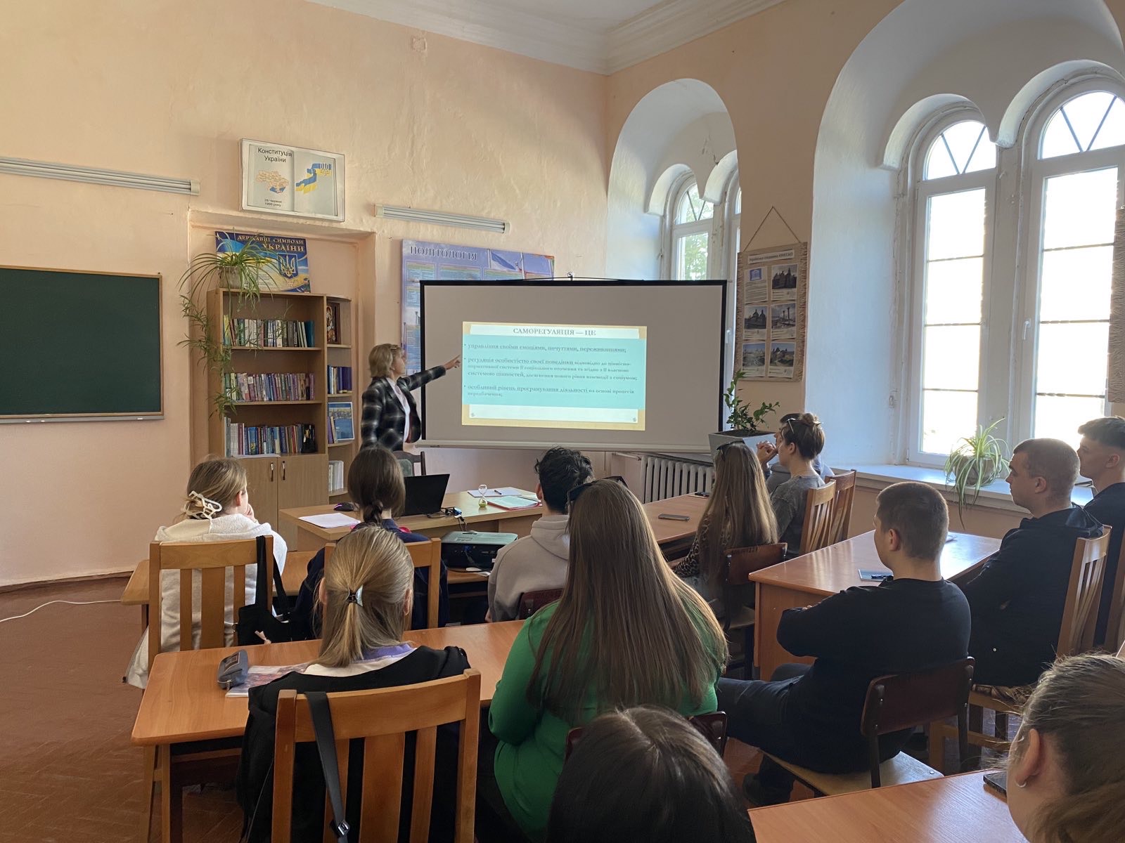 Під час заняття здобувачі вищої освіти мали змогу дізнатися про важливі аспекти ментального здоров’я, вплив війни на психічний стан людини, наслідки стресу на роботу мозку людини та ознайомились ефективними техніками психоемоційної саморегуляції, що допомагають підтримувати психологічну стійкість у складних обставинах.