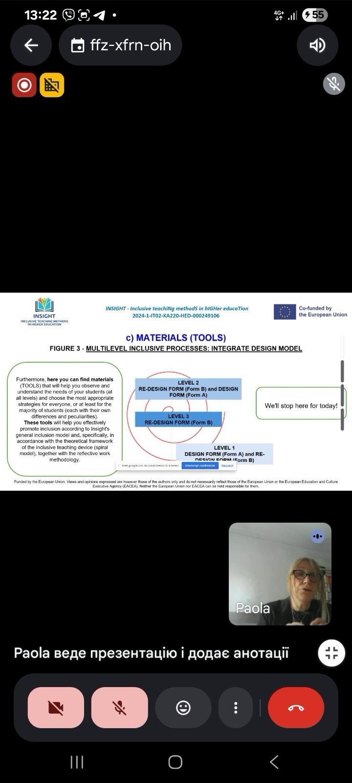 Перша синхронна сесія учасників проєкту Erasmus+ Higher Education «INSIGHT: Інклюзивні методи навчання у вищій освіті» успішно відбулася