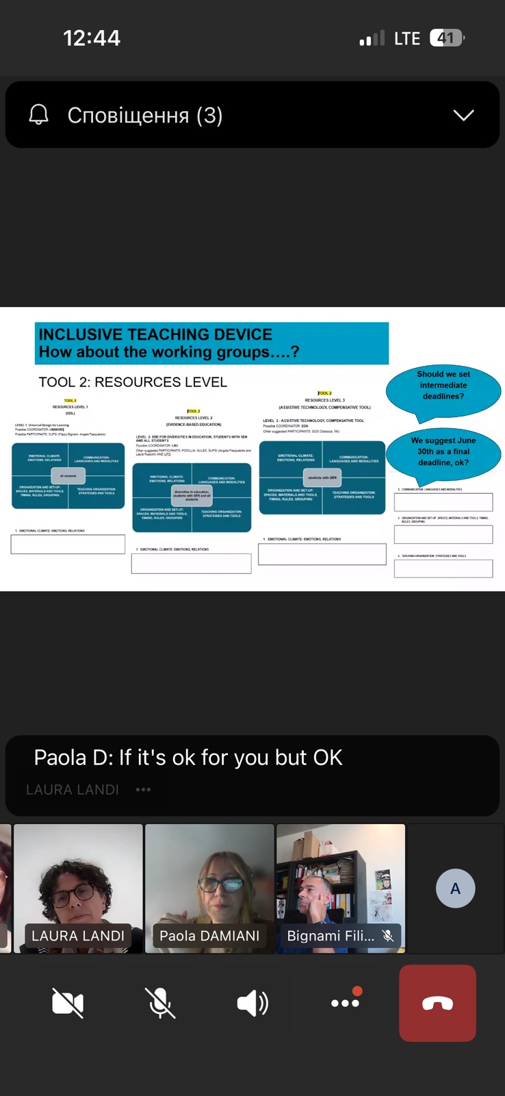 Під час онлайн-зустрічі учасники обговорили ключові підходи до формування змісту майбутнього документа, зосередившись на необхідності включення практичних прикладів, ефективних стратегій та теоретичних засад, що відповідають принципам інклюзивного навчання.