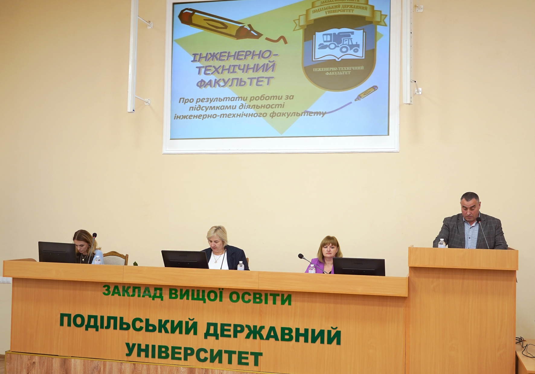 Про звіти за підсумками діяльності факультетів та навчально-наукових інститутів, а також перспективи їх розвитку доповіли: декан факультету агротехнологій і природокористування Віталій ЛАПЧИНСЬКИЙ, декан факультету ветеринарної медицини і технологій у тваринництві Віктор ГОРЮК, в.о. декана інженерно-технічного факультету Юрій ПАНЦИР, в.о. декана факультету енергетики та інформаційних технологій Людмила МИХАЙЛОВА, в.о. декана факультету навчально-наукового інституту бізнесу і фінансів Наталія КОРЖЕНІВСЬКА, директор навчально-наукового інституту харчових технологій Анатолій ДИМЧУК, в.о. директора навчально-наукового інституту заочної і дистанційної освіти Олександр СЕМЕНОВ.