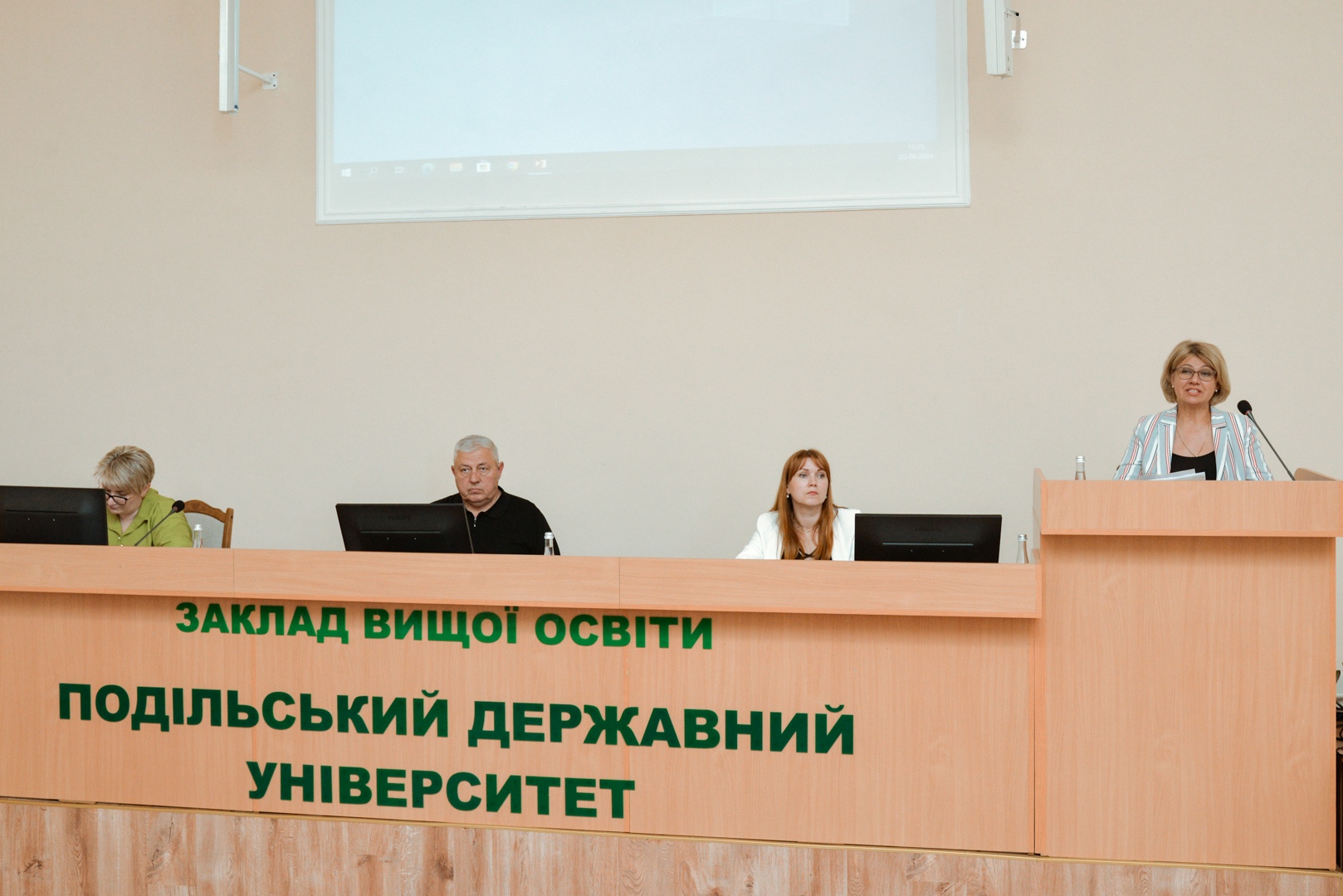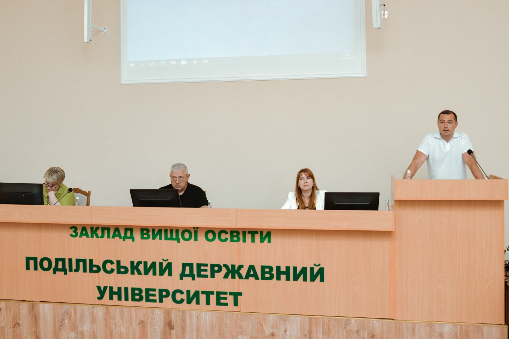 03 червня 2024 року відбулося планове засідання вченої ради Закладу вищої освіти «Подільський державний університет», в якому прийняли участь 59 членів ради із 67. Голова засідання, ректор університету, професор ІВАНИШИН Володимир Васильович розпочав засідання з урочистостей та вручив атестат професора по кафедрі транспортних технологій та засобів АПК ШЕЛУДЧЕНКО Лесі Сергіївні.