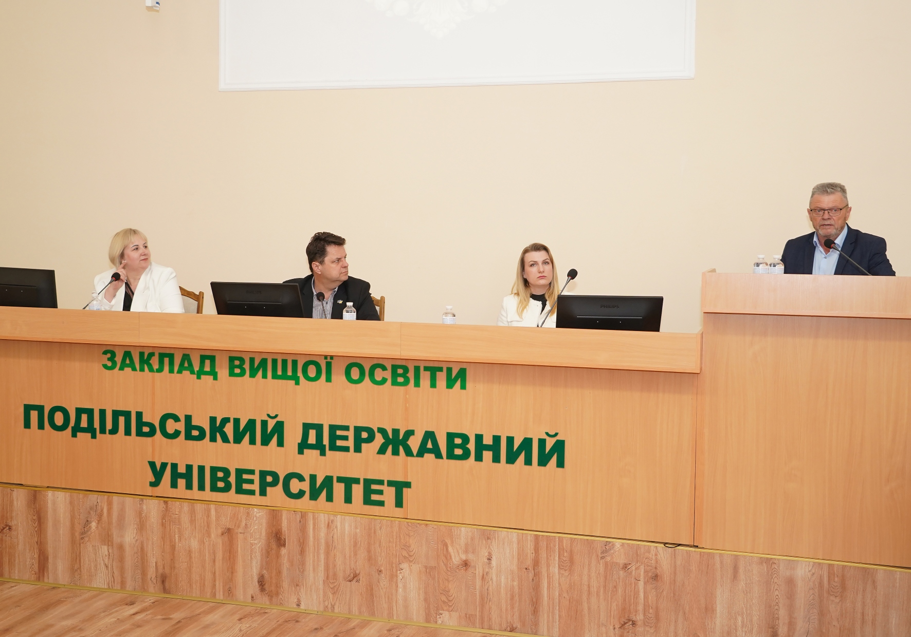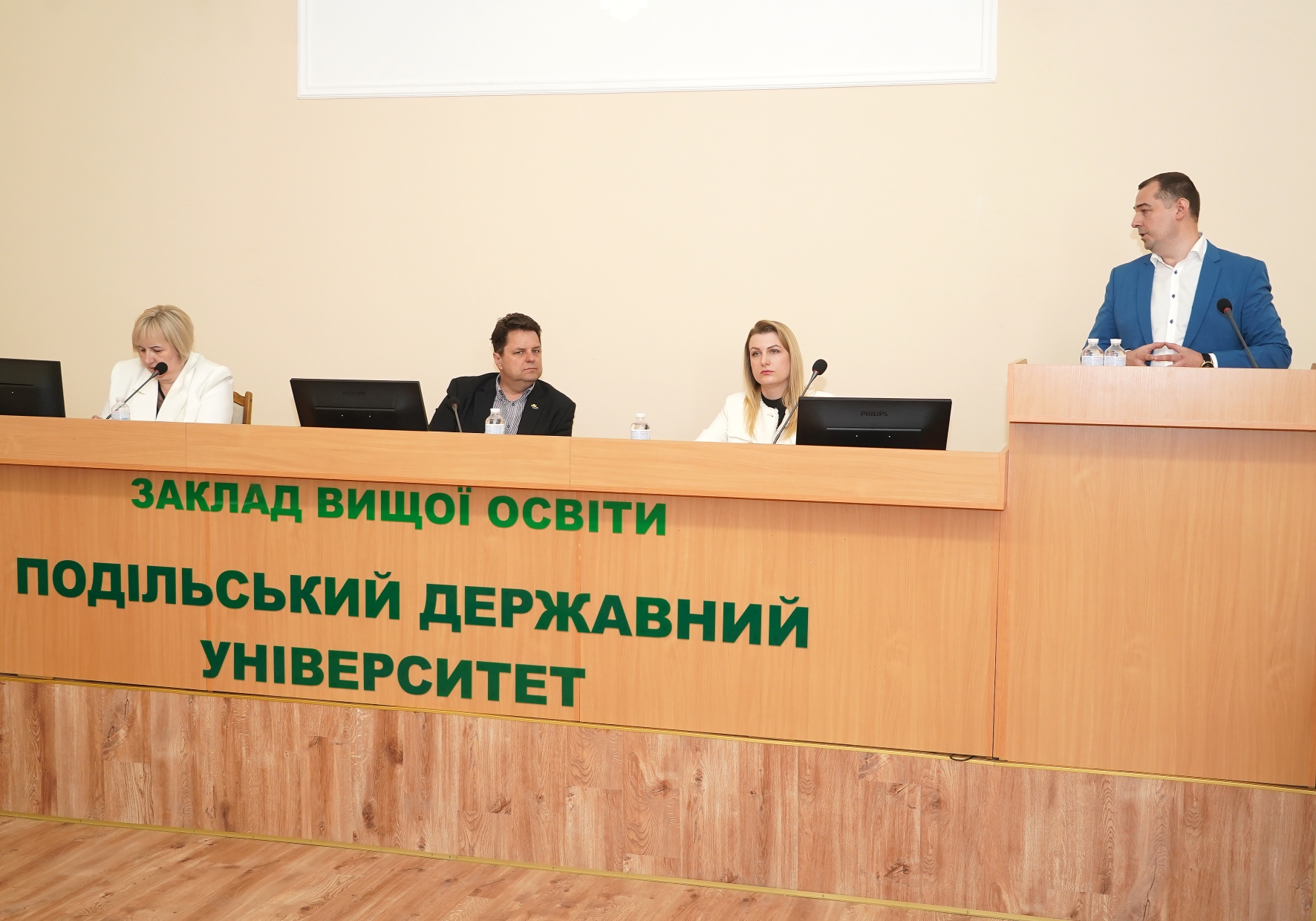 29 квітня 2025 року Заклад вищої освіти «Подільський державний університет» мав за честь приймати з робочим візитом поважну делегацію: заступника Міністра освіти і науки України Михайла ВИННИЦЬКОГО, першого заступника голови Хмельницької ОВА Оксану ВЖЕШНЕВСЬКУ, директора департаменту освіти та науки Хмельницької ОВА Олександра ПУНДУ, радника голови Хмельницької ОВА Андрія ГАМАЛІЯ. Мета візиту — ознайомлення з діяльністю університету, його колективом та матеріально-технічною базою.