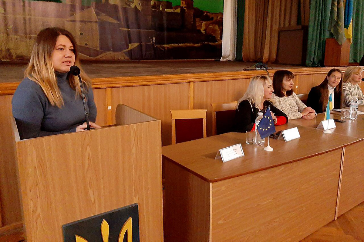 Валентина Борковська, начальник відділу міжнародних зв'язків, розповіла про діяльність відділу та запросила, з метою покращення мовних навичок, усіх бажаючих студентів та викладачів університету до участі у щотижневому англомовному дискусійному клубі «PDATU English club», що діє за сприяння волонтерів із Корпусу Миру (США) в Україні Clark Hughes та Morgan Kincaid Kline Riley