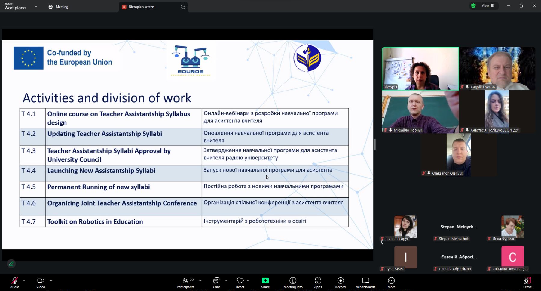 6 березня 2026 року завершилася серія міжнародних онлайн-заходів «Update of Teacher Assistantship Syllabi», організованих у межах проєкту Erasmus+ EduRob «Developing Future Educators’ Digital Competence through Introducing Robotics into the Curriculum».